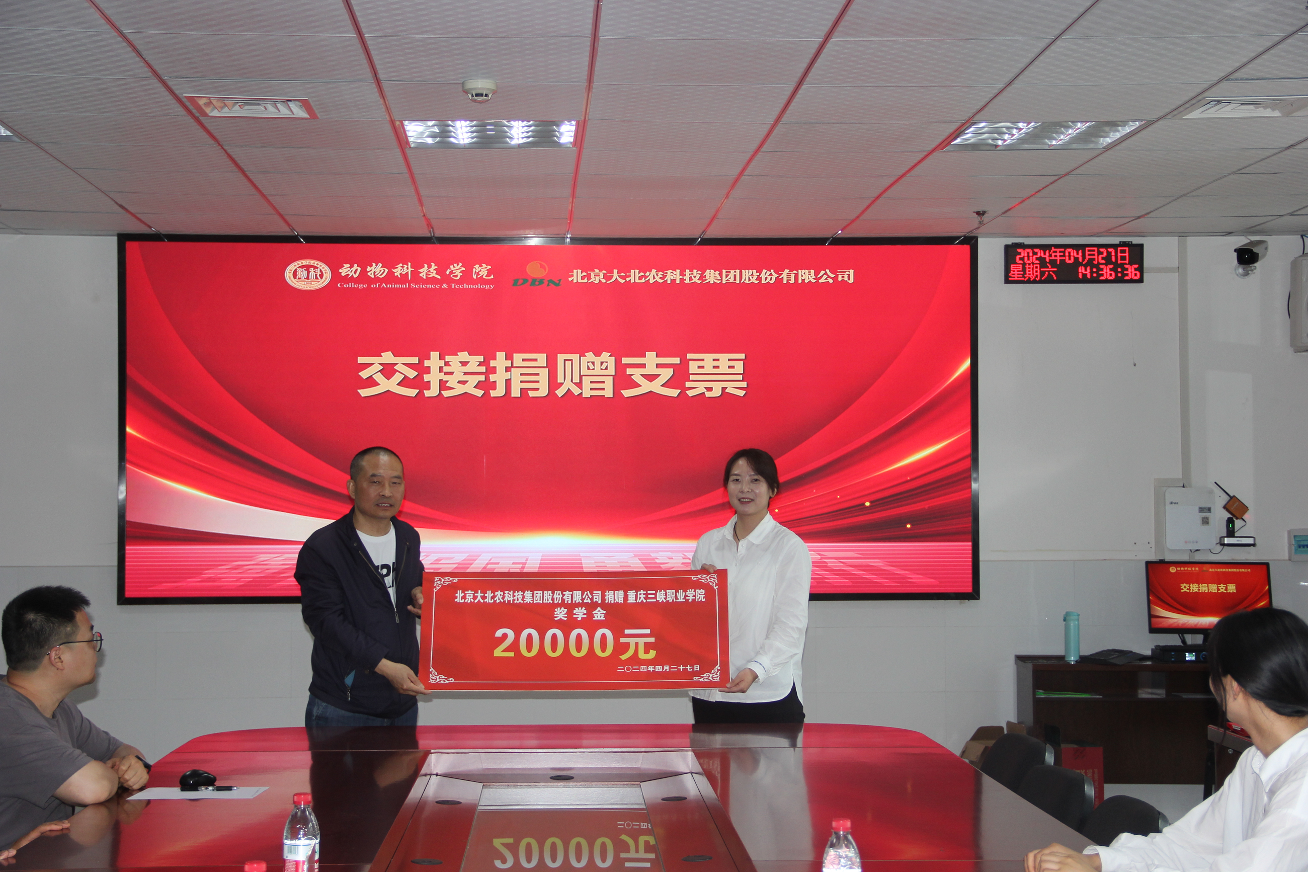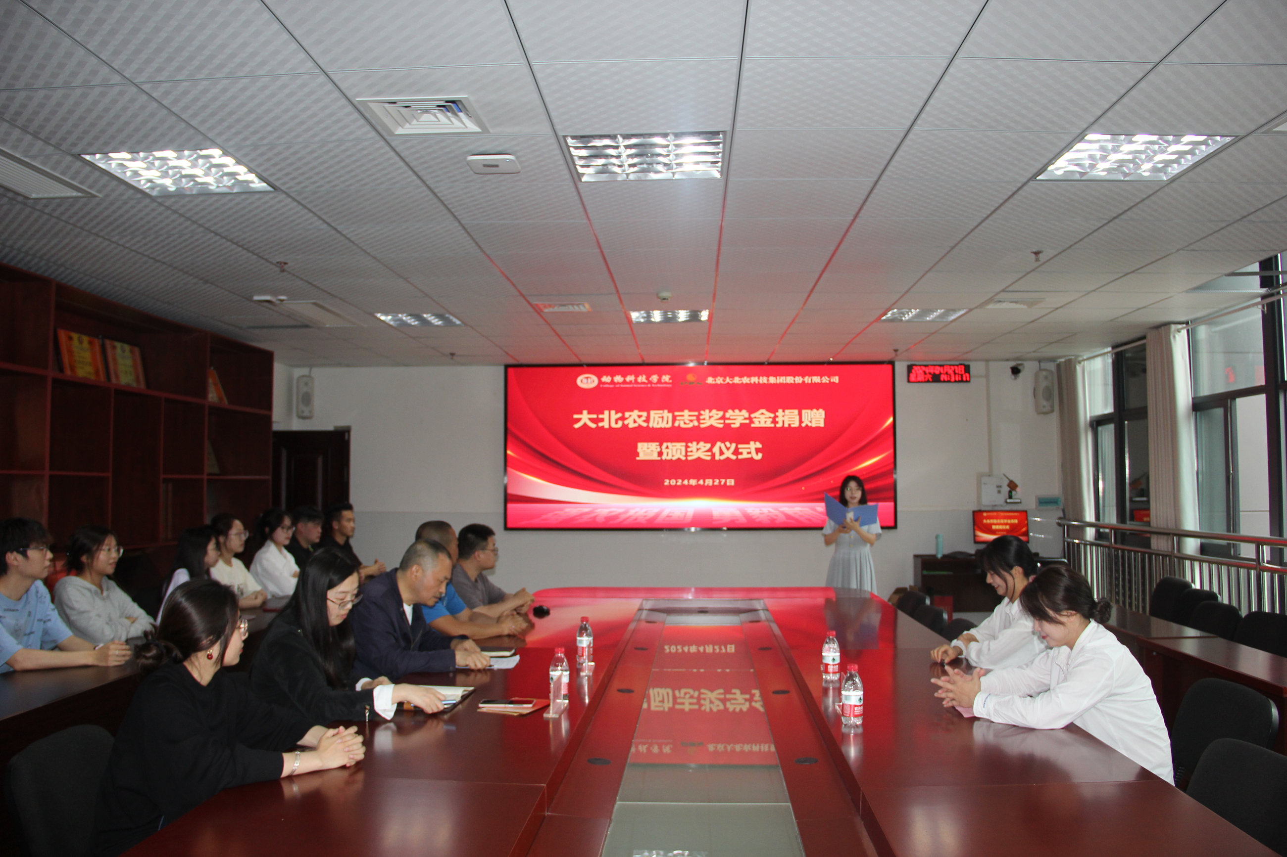 2024年4月27日下午,动物科技学院在现代畜牧大楼412会议室举行大北农励志奖学金捐赠暨颁奖仪式,大北农猪饲料集团重庆区创业人才总监方维维、大北农猪饲料集团重庆区招聘主管唐莹、动物科技学院党总支副书记李思琪、副院长向邦全、学工科长扎西丹珍,部分教师代表和获奖学生参加了本次会议。会议由动物科技学院教学干事龚伟主持。