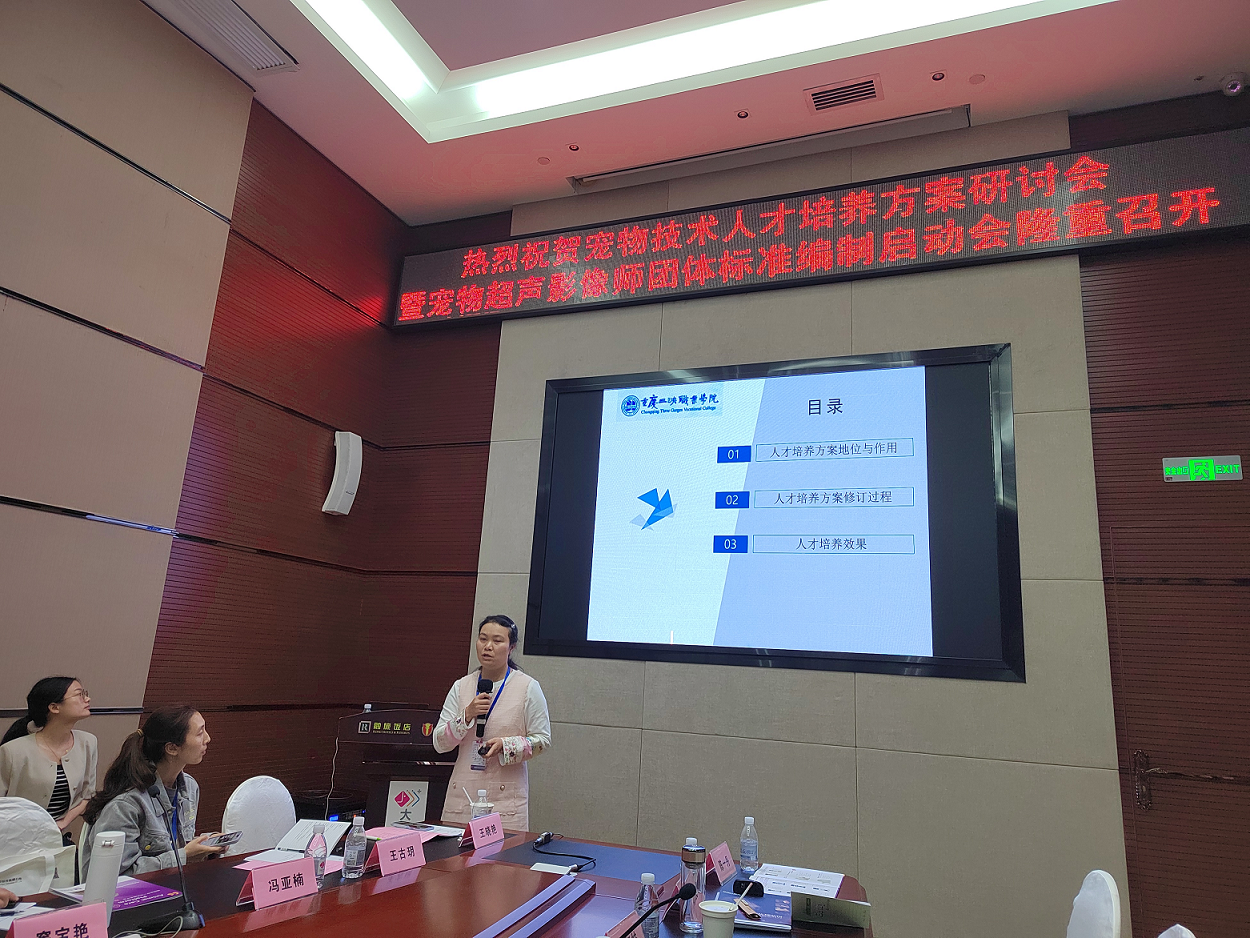 会议主要内容有院校人才培养方案研讨、宠物超声影像师团体标准介绍及征求意见、宠物超声影像师团体标准编制启动仪式等。会议上专家们做了精彩的分享报告,如广州市技师学院陈实副校长分享了新职业、新工种、新标准-以广东省职业等级认定规范编制及题库开发为例的经验,中国兽医协会刘秀丽副秘书长阐述了宠物超声影像师团体标准立项目的及其对行业人才培养的意义等。学院王晓艳副教授做了关于校企合作制定人才培养方案经验分享的报告。