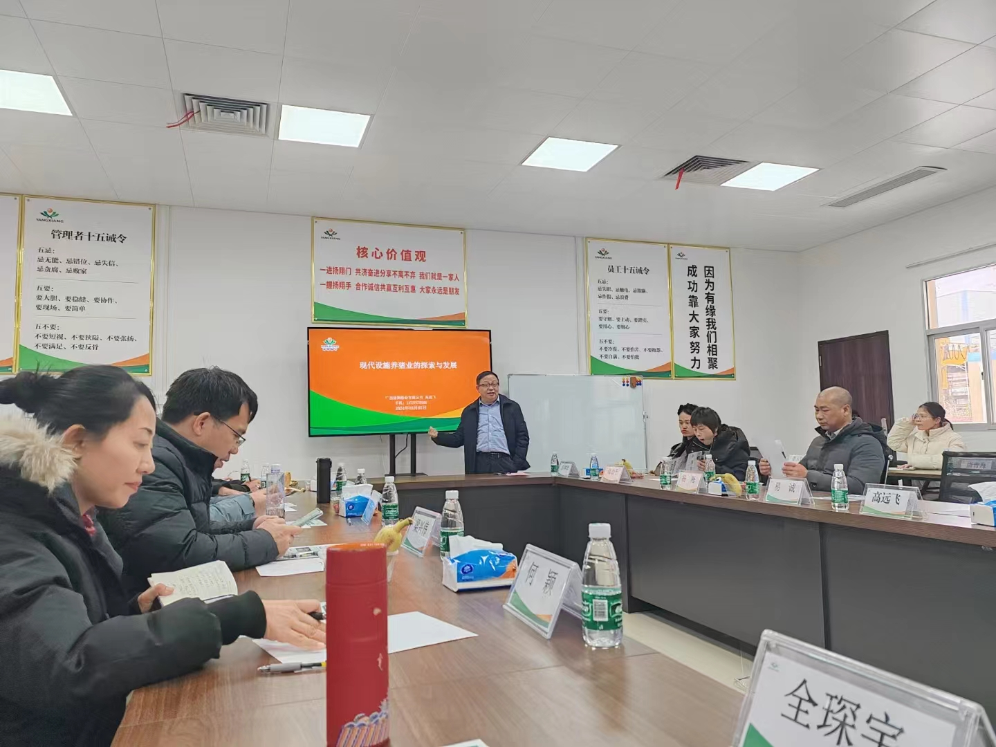 杨翔副总裁高远飞亲自主持本次参观考察交流活动,先实地参观楼房猪舍及其配套的饲料加工区、环保区,随后高总分享“料养宰商”一体化高层楼房养猪新模式,揭晓高层楼房养猪痛点、难点和堵点钥匙,共邀学校深度合作,为搭建智能化养猪教学与生产无缝对接三级递进实训体系进行沟通交流。