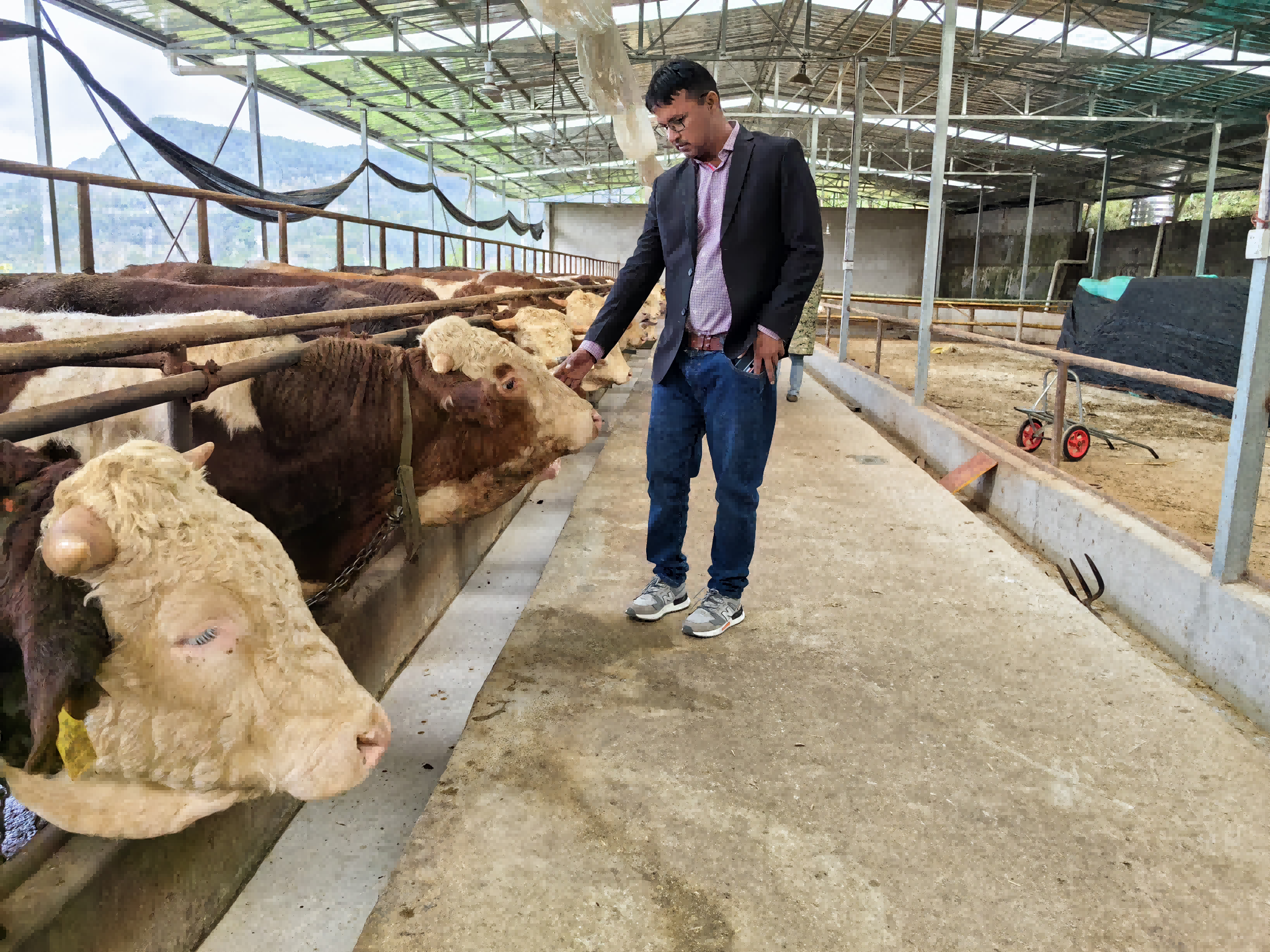 10月28日-29日,动物科技学院雍康博士、潘军博士、客座教授Ali Mujtaba Shah博士和周乾兰等四位老师深入云阳县天友奶源基地和几家肉牛场开展奶牛、肉牛饲养管理、营养饲料评估、牛繁殖和人工授精、疾病防治和技术指导工作。
