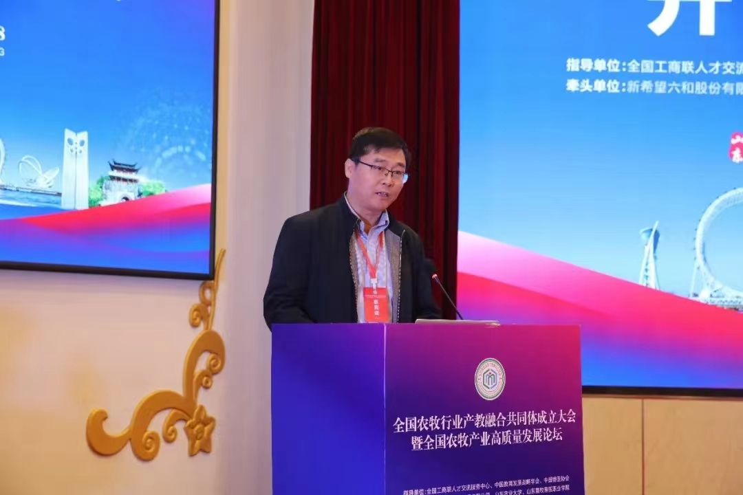 成立大会后,与会的农牧行业和职业教育专家围绕产教融合政策、国内外农牧行业发展现状与未来发展趋势等主题进行了专题报告。就产教融合共同体建设的政策和经验,中国教育科学研究院职业教育与继续教育研究所副研究员、博士聂伟进行了《产教融合政策解读》专题报告,从政策的角度出发,解读了国家对于职业教育和农牧行业的殷切期盼。湖南铁道职业技术学院院长、二级教授张莹进行了《国家轨道交通装备行业产教融合共同体建设经验分享》专题报告,分享了产教融合共同体建设的重要经验。新希望六和股份有限公司首席领导力教练吉崇星进行了《共同体的使命与担当》专题报告,阐述了产教融合共同体建设对于农牧行业和职业教育发展的总要意义。就国内外农牧行业发展现状和趋势,全国畜牧总站畜禽种业指导处副处长邱小田进行了《国内外农牧行业发展现状与趋势》专题报告,为与会代表全面介绍了国内外农牧行业的现状,并对将来的发展趋势作了深入的剖析。中国兽医协会副会长兼秘书长辛盛鹏进行了《我国动物流行病发展》专题报告,从流行病的角度出发,分析了我国动物流行病的发展脉络。国家肉鸡产业技术体系产业经济岗位骨干成员辛翔飞进行了《我国肉鸡产业发展现状与趋势》专题报告、国家奶牛科技创新体系岗位科学家、教授王中华进行了《我国牛产业发展现状与趋势》专题报告、农业农村部生猪产业监测预警首席专家王祖力进行了《当前生猪产业发展形势及后市展望》专题报告,分别从不同产业的角度出发,深刻分析了当前产业现状,并通过大量行业统计数据对未来的行业发展趋势作了展望。山东畜牧兽医职业学院二级教授、全国高校教学名师李舫进行了《规模化畜禽养殖场生物安全体系建设》专题报告,分享了对于规模化养殖场生物安全体系建设的重要经验。