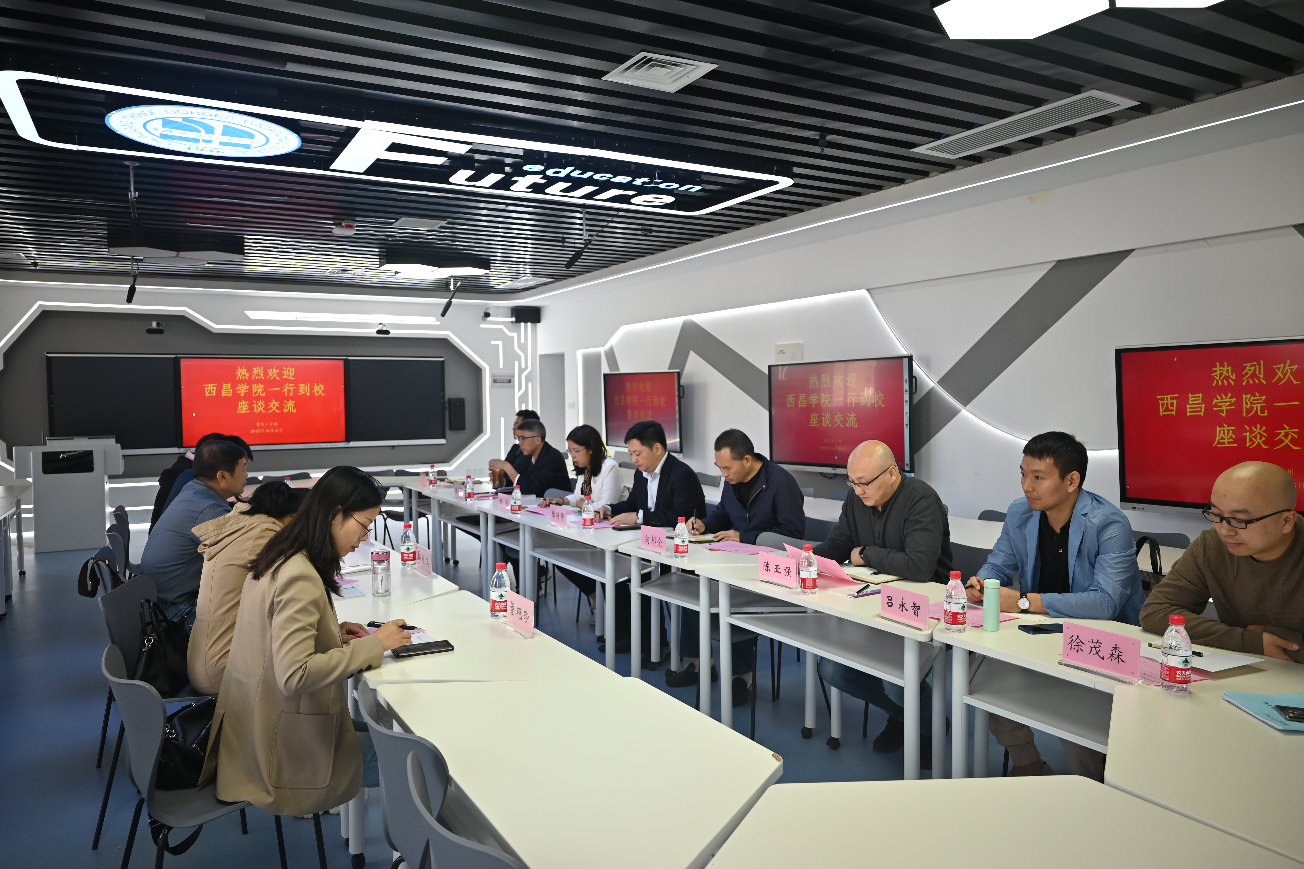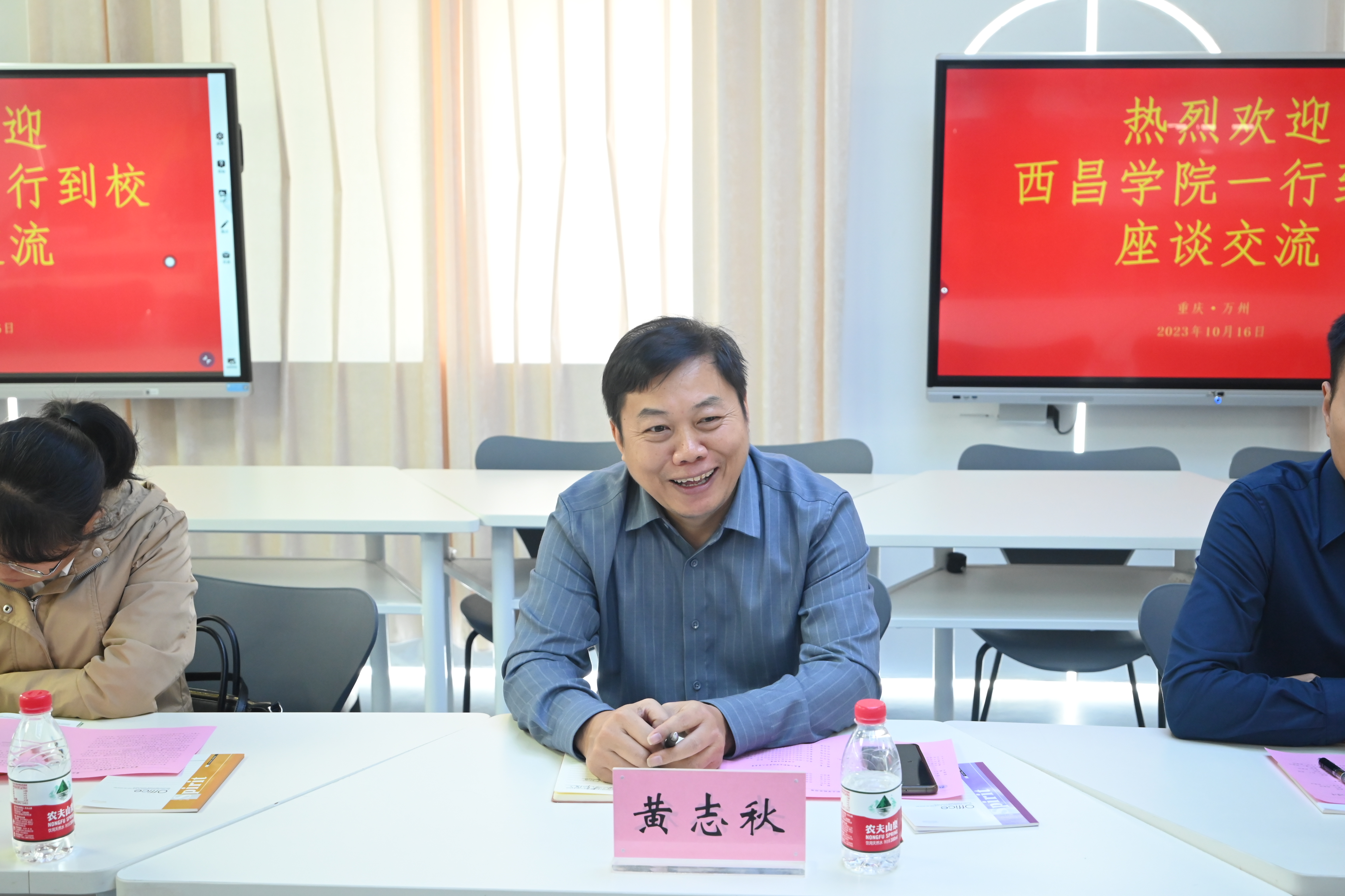 黄志秋院长对重庆三峡职业学院的热情接待表示感谢,他通过宣传视频对西昌学院的发展历史、办学情况等进行了介绍,同时邀请学院老师到西昌就学院党建工作方面学习交流。