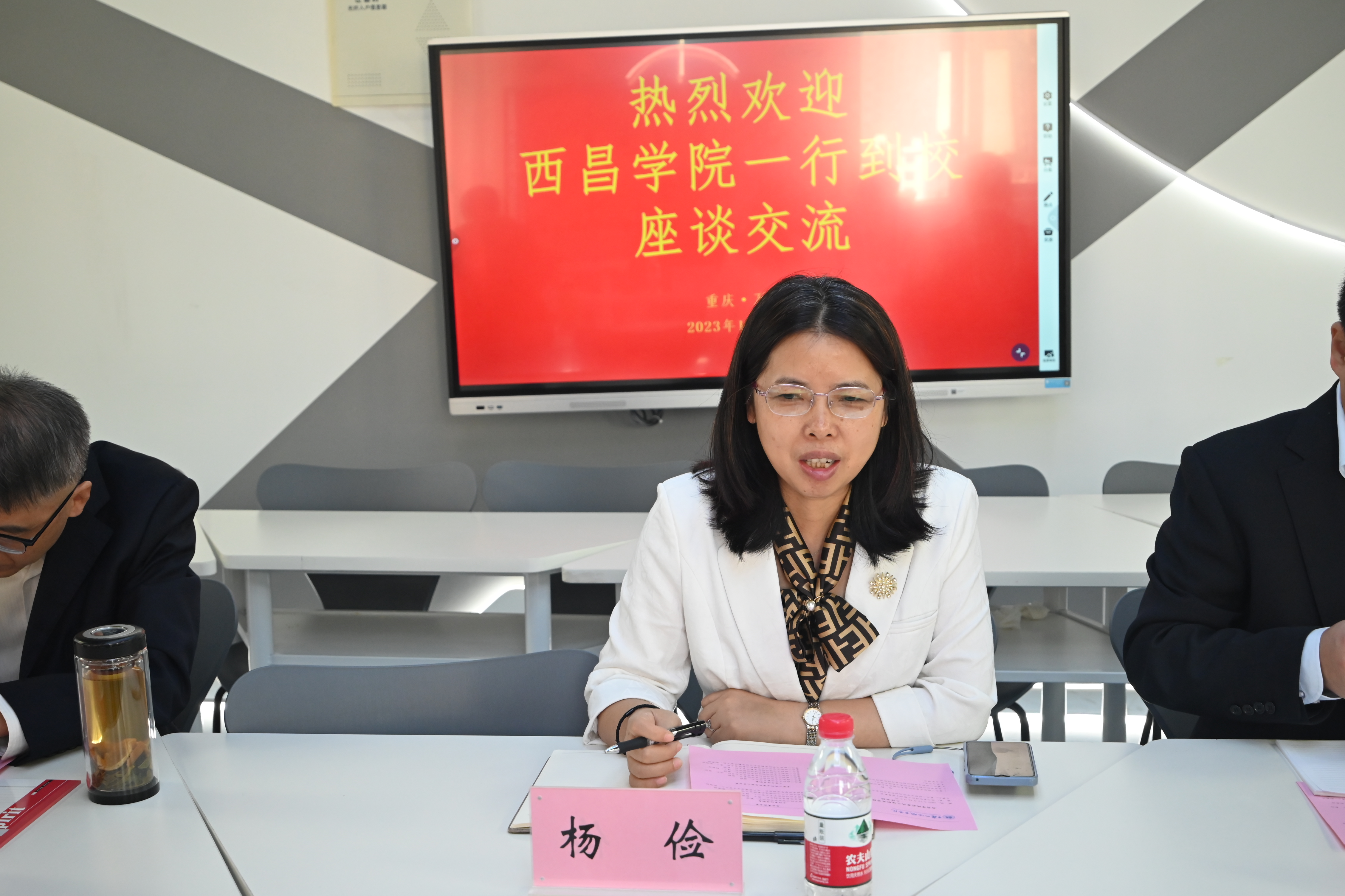 杨俭处长对西昌学院黄院长一行的到来表示热烈欢迎,并详细介绍了重庆三峡办学情况、专业建设、教学成果、人才培养、校企合作等方面的内。她表示,希望通过此次交流,促进学校双方更加紧密合作,在联合人才培养方面共创新篇章。