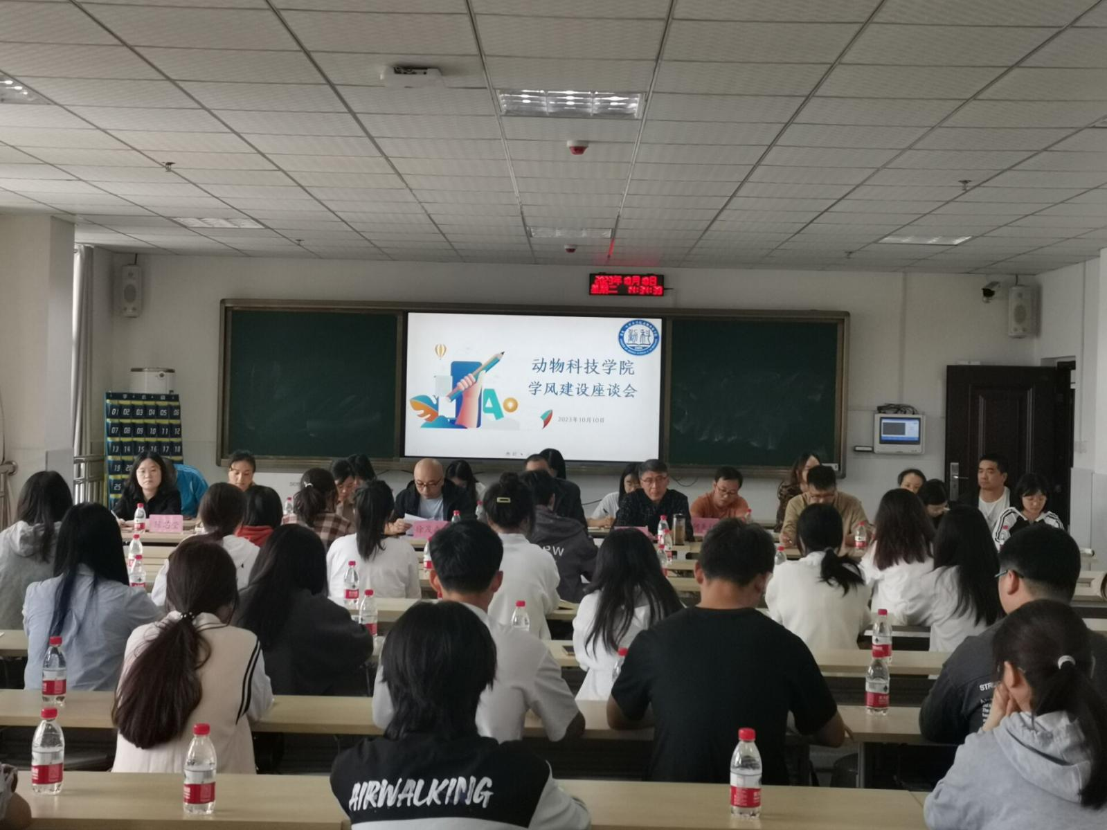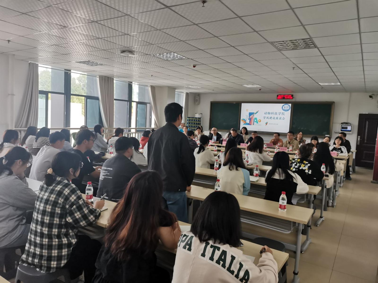 为进一步了解学生需求,改善学习环境,开展好学生教育、管理等工作,促进我院发展建设,动物科技学院于10月10日在现代畜牧科技大楼614召开了学风建设座谈会。师生代表齐聚一堂、畅所欲言,分享学习体会与感受,对学院学风、发展等建言献策。会议由动物科技学院副院长向邦全主持,动物科技学院党总支副书记李思琪、实验室主任李文娟、马克思主义学院黎妮、通识学院张霖森、学校教务处陈芯莹、动物科技学各专业教研室主任、专任教师代表、教学科、学工科教师代表以及学习委员和班委代表参加了此次座谈会。