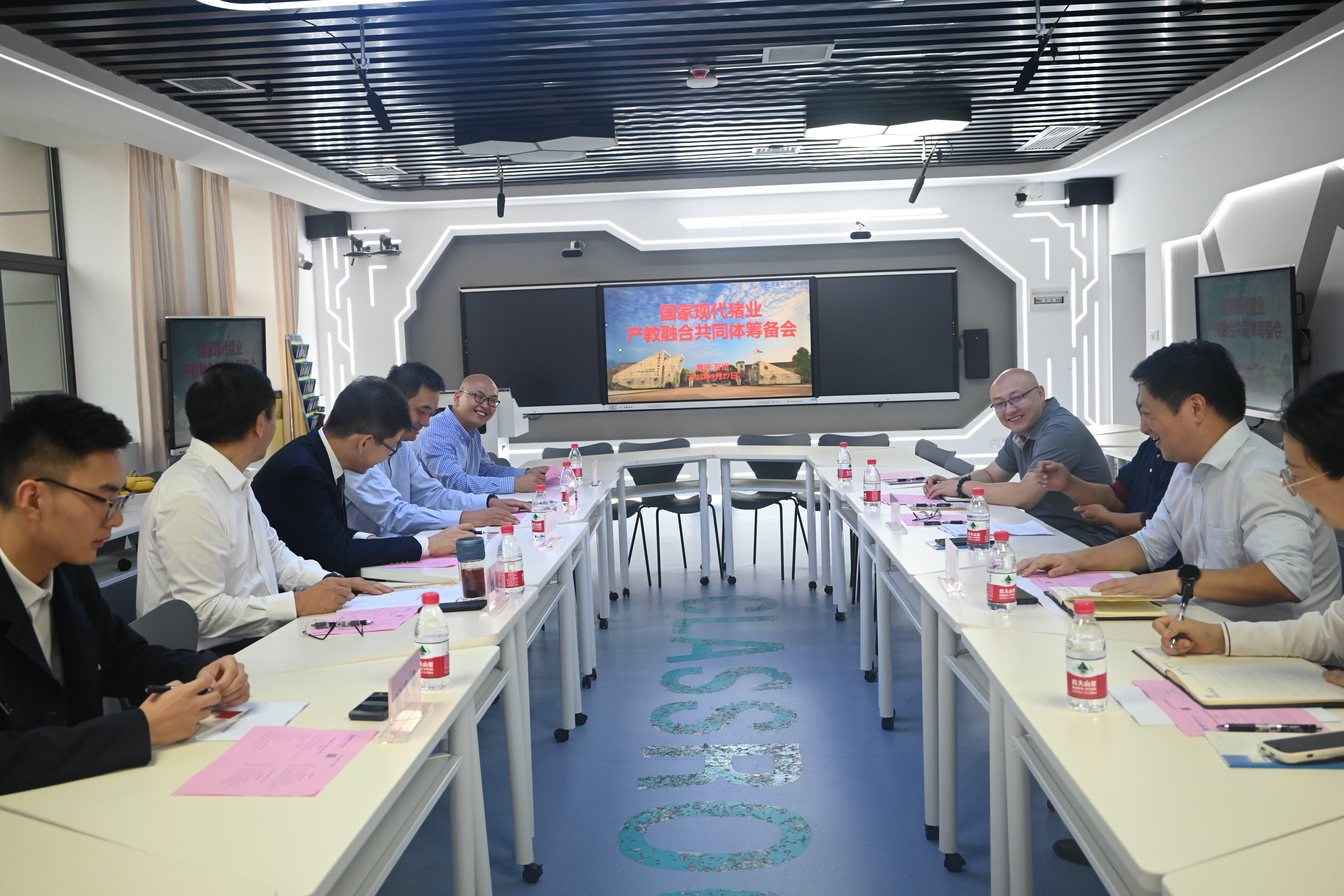 随后,动物科技学院党总支书记、院长张传师汇报了共同体筹备情况,主持讨论了共同体章程初稿、拟定理事会名单、拟定成立大会方案以及共同讨论了拟邀请嘉宾名单。最后,与会嘉宾共同学习了教育部行业产教融合共同体建设指南,讨论了申报国家产教融合共同体事宜。