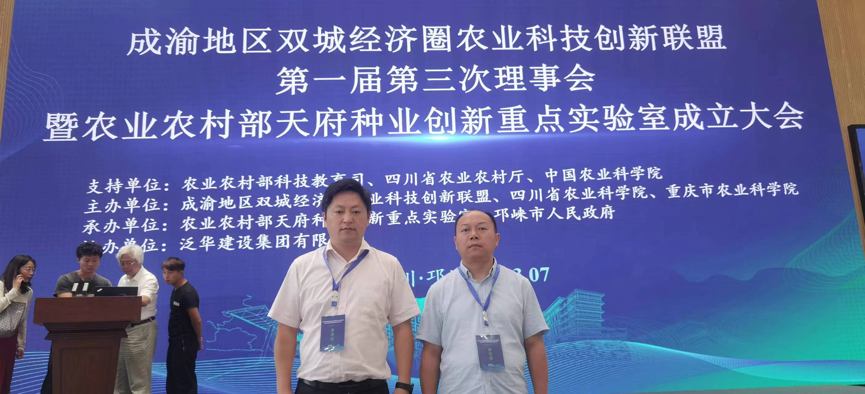 7月2日,成渝地区双城经济圈农业科技创新联盟第一届第三次理事会暨农业农村部天府种业创新重点实验室成立大会在邛崃市天府现代种业园召开,我院作为创新联盟的理事单位受邀参加此次会议,动物科技学院党总支书记、院长张传师和潘军博士参加了此次会议的系列活动。我院参会的两名同志实地参观了天府现代种业园、四川现代种业研究院、“天府粮仓”数字农业川渝联合创新重点实验室(邛崃基地)、农业农村部天府种业创新重点实验室(部省共建)的建设情况,详细了解了实验室的功能、试验仪器设备,并与实验室工作人员进行了交流;大会会议期间,参会同志还听取了联盟 2022年度工作报告和2023年工作建议,及2位院士和多名专家做的关于种业创新和品种资源的开发的系列研究报告。