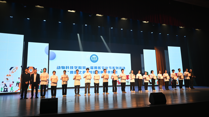 4月27日下午,动物科技学院团总支、学生会在学生活动中心开展了兽医文化节闭幕式。我院同学与老师为本次晚会带来了八个精彩的节目。由我校的各位领导为“未来小兽医征文比赛”和“兽医之星知识竞赛”获奖的同学颁发获奖证书。李思琪老师讲述故事《广禅侯与水草庙》,周鑫宇同学领誓兽医宣誓,活动的最后,全体同学一起合唱《兽医之歌》,歌声缓缓,热情洋溢,我们作为新时代的兽医师,能救死扶伤,也能紧扣时代脉络,在属于我们的天地里绽放青春之花。