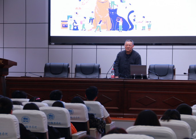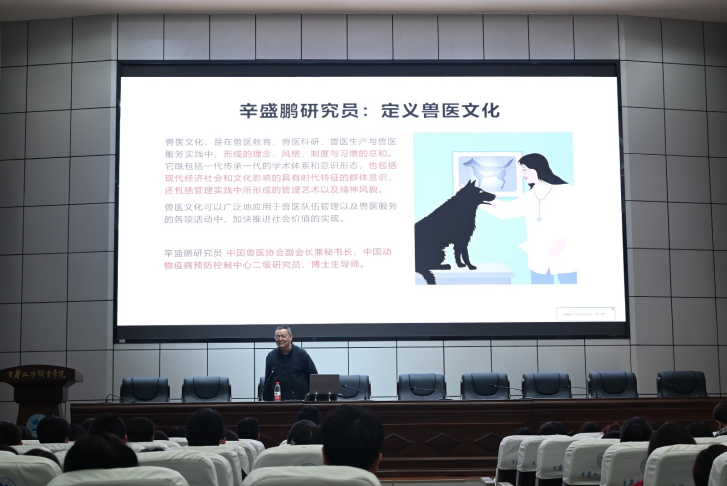 4月25日,动物科技学院邀请中国兽医协会兽医文化分会代秘书长王成教授参加我院兽医文化节系列活动,并在博雅楼阶梯教室为我院学生专题演讲了“中国兽医发展史上的兽医文化”,王教授从四个方面对兽医文化进行了讲解。演讲结束后,王教授还和我院学生一同参观了我院现代生猪产业科技馆,同学们纷纷表示此次活动一步提高了大家对生猪养殖的认识,让我们了解到了科学养殖的重要性。