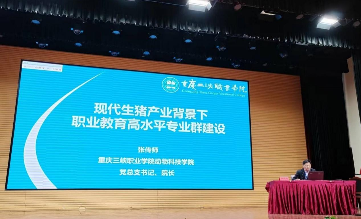 4月24日,重庆三峡职业学院动物科技学院党总支书记、院长张传师在此次研修班作汇报。张传师院长以“现代生猪产业背景下职业教育高水平专业群建设”为题,从专业群定位、人才培养体系、三大平台建设(中国生猪产业职业教育产学研联盟、重庆生猪产业协同创新研究院、生猪产业创新学院)以及联盟合作发展入题,重点阐述了专业群在平台建设中助推生猪产业的经验和做法,分享了在高水平专业群建设期间获得的成果。与会嘉宾表示分享的经验、做法具有较大的借鉴意义与示范推广作用,得到一致好评与赞赏。