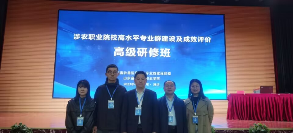2023年4月21日,“涉农职业院校高水平专业群建设及成效评价高级研修班”在山东潍坊开班。重庆三峡职业学院动物科技学院党总支书记、院长张传师、教学科科长陈脊宇、双高干事谷九龙、专任教师尹艳玲博士、潘军博士参加研修班学习交流。