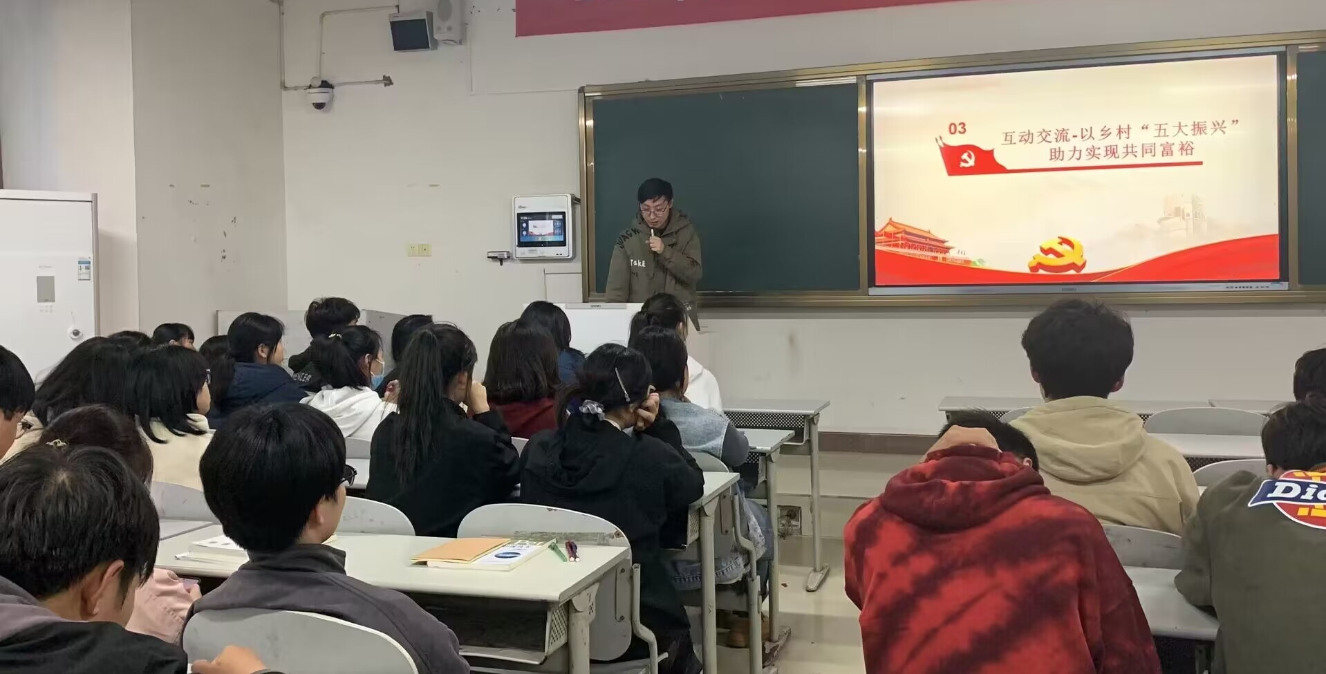 会上,宋杨同志从大会主题出发,深入重温党的二十大精神内容,号召广大师生和群众以实际行动和具体成效把大会精神学到深处落到实处。同时结合自己经历,从志愿服务传递人间温情;为党育人、为国育才;走好走实乡村振兴之路 全力推动党的二十大精神落地开花结果三个方面展开,最后引出乡村产业、人才、文化、生态、组织振兴内容,鼓励师生群众们要以党的二十大精神为引领,为人民服务,积极参与职业教育发展,赋能乡村振兴。