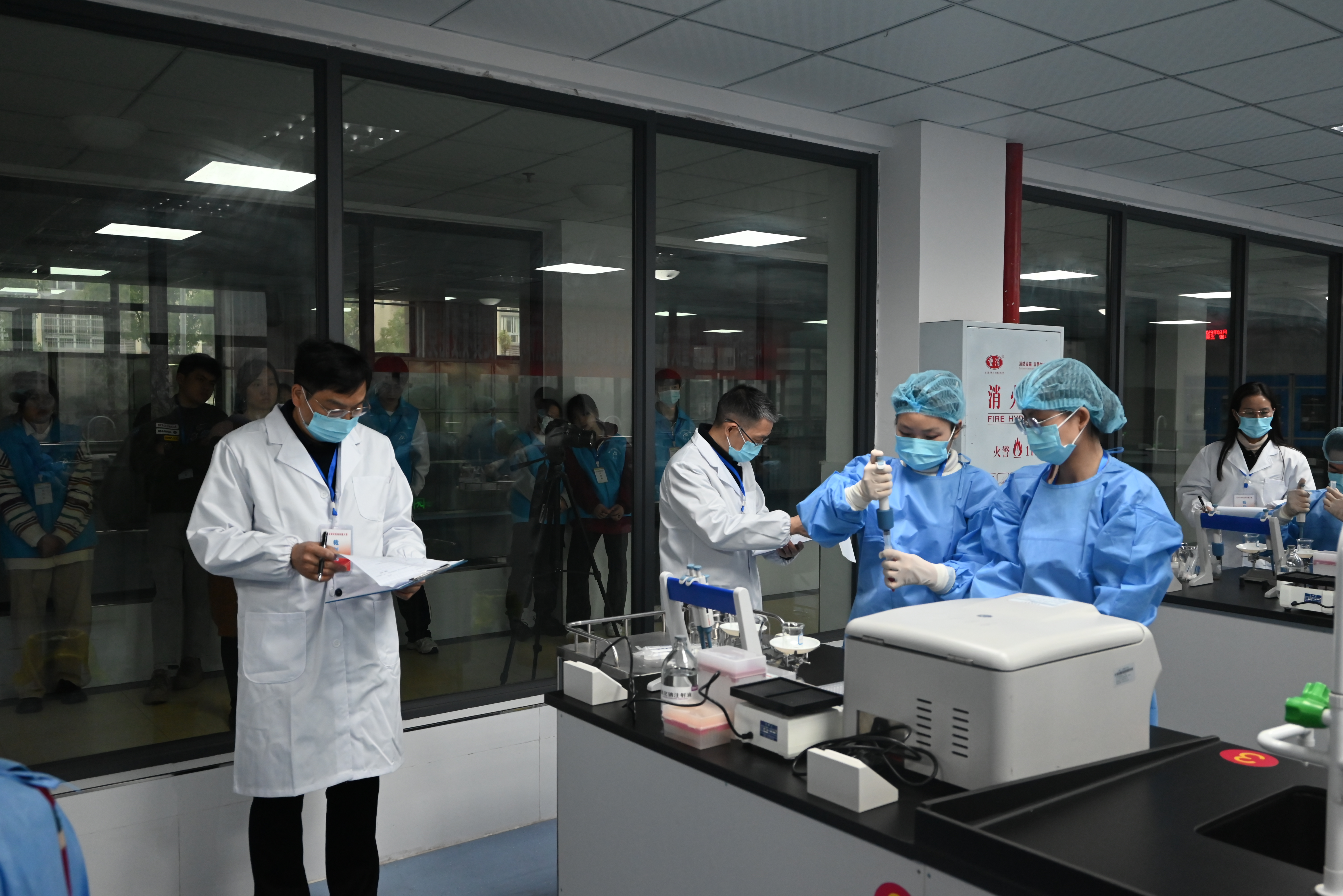 本次比赛分为技能操作和理论考核两部分。比赛过程中,各组参赛选手互相配合,按照国家标准规范完成了试验器材准备、配制1%鸡红细胞悬液、血凝试验、配制四单位病毒、血凝抑制试验、抗体滴度报告等步骤。经过一天的激烈角逐,最终评选出1个一等奖、1个二等奖、2个三等奖,我院学子李若娴、彭龙荣获一等奖,陈江陵、周婷荣获二等奖。