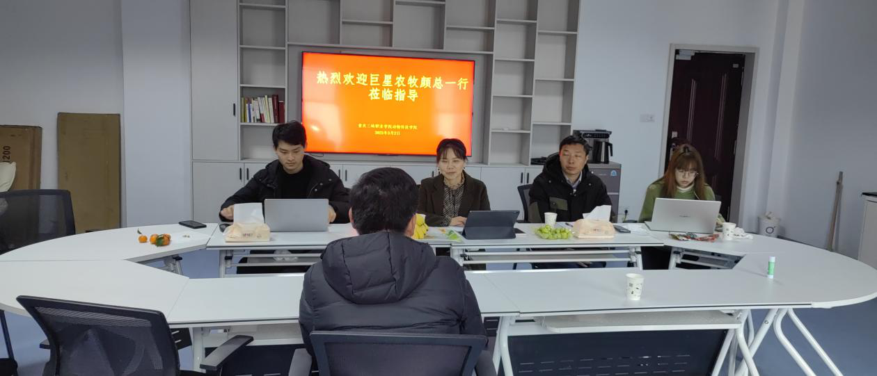 动物科技学院党总支书记、院长张传师对颜总一行表示热烈欢迎,同时了解往届学生在巨星农牧的工作表现情况,提出愿进一步深化校企合作,进一步加强产学合作,协同育人等方面的培育力度,同时表示会着力提高学生培养质量,为企业提供更多高水平职业技术型人才。