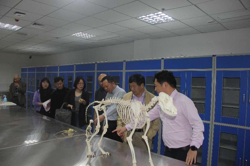交流会后,学院领导带领孙德林教授一行参观学院实验室、生猪大数据中心及动物标本样品展示厅。