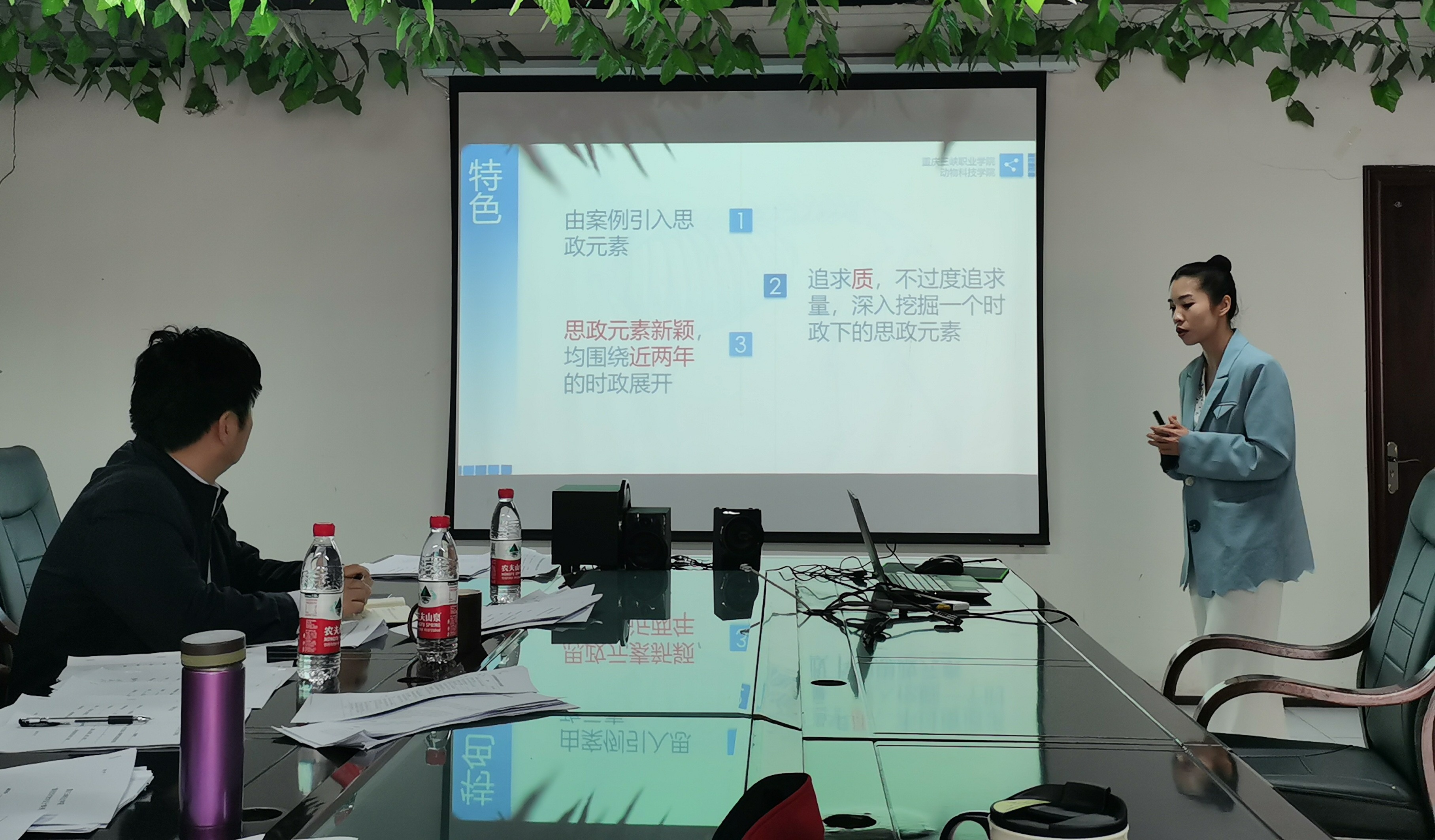 本次比赛邀请了学校首届课程思政教学设计大赛一等奖获得者彭津津副教授、马克思主义学院教师罗定华教授以及动科院领导班子、教师代表作为评委,并要求所有教职工观摩,为学院课程建设营造了良好的课程思政学习氛围。