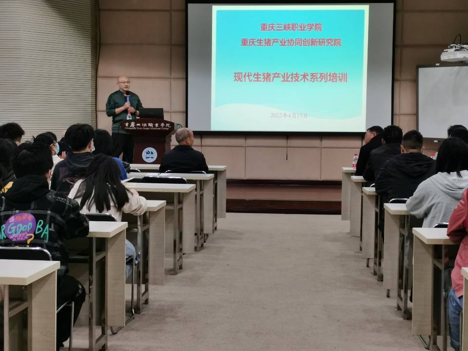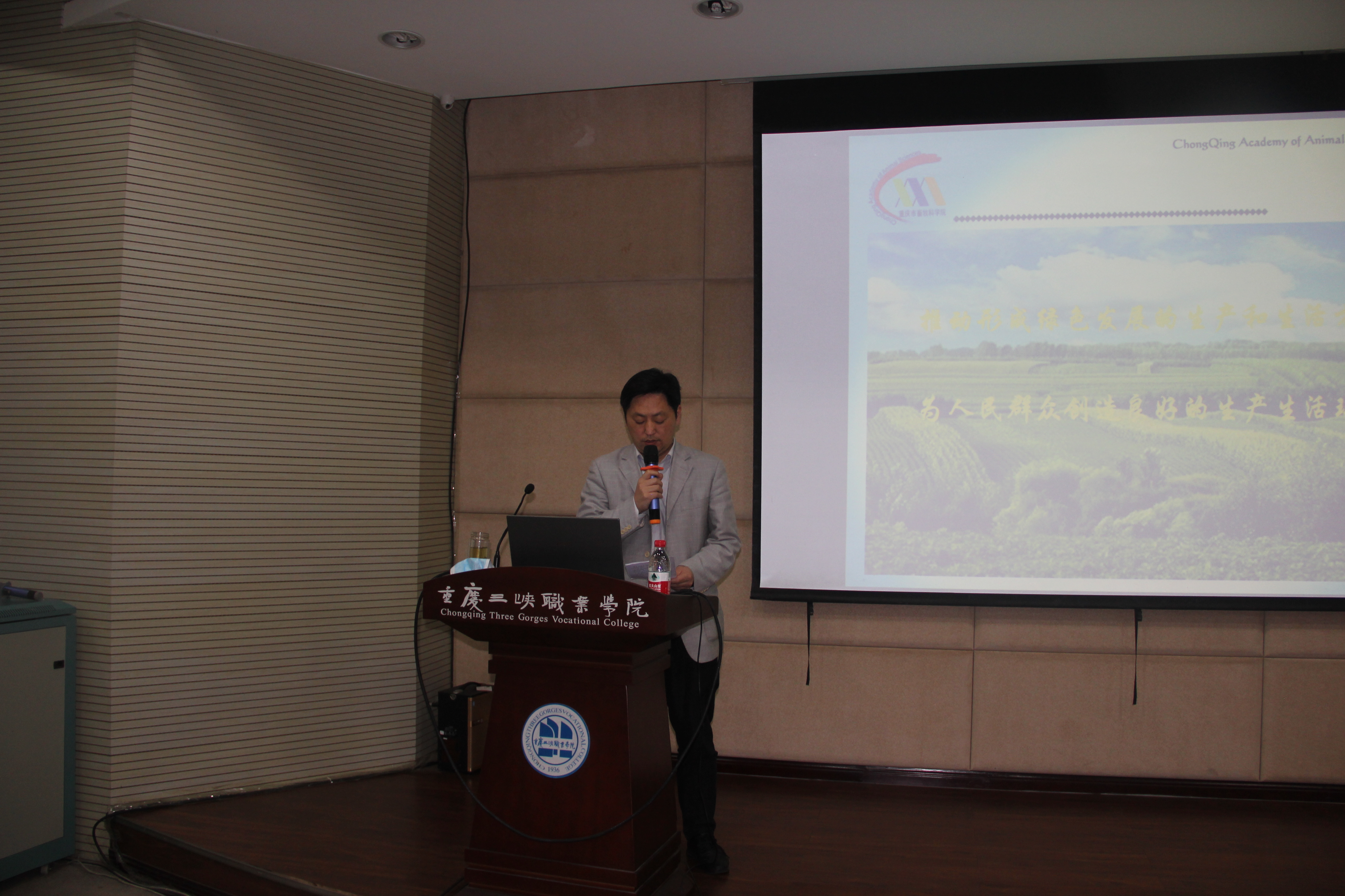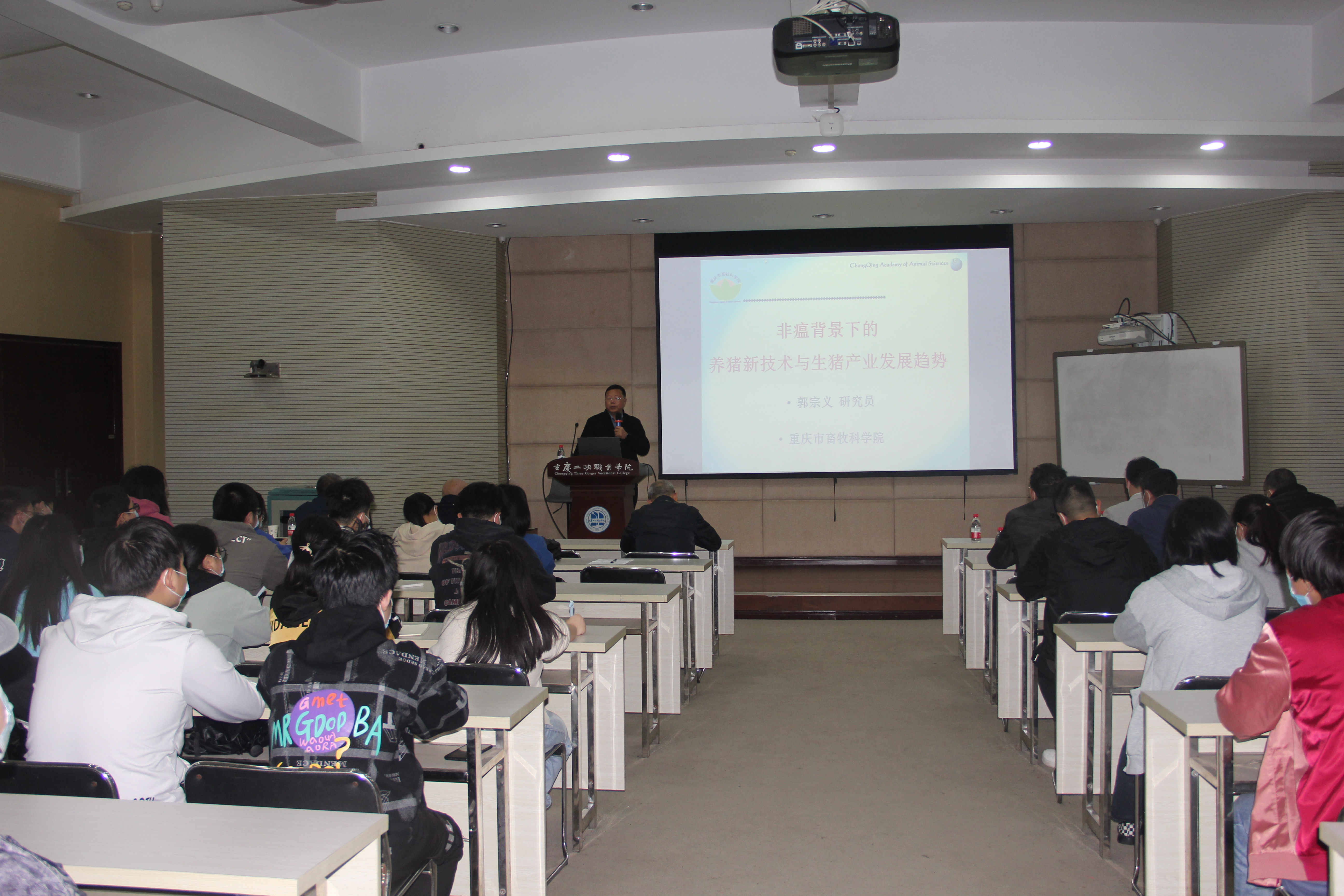 4月15日,我院邀请重庆市畜牧科学院副院长黄勇研究员、养猪研究所所长郭宗义研究员到校开展现代生猪产业技术系列培训第一期,此次系列培训是我校与重庆市畜牧科学院联合建立的重庆生猪产业协同创新研究院本年度重点工作,培训由学院党总支书记、院长张传师,副院长陈亚强分别主持,学院近50名师生参加培训,此次培训还邀请了万州区畜牧技术推广站站长马秀云、副站长骆世军等相关专家出席。