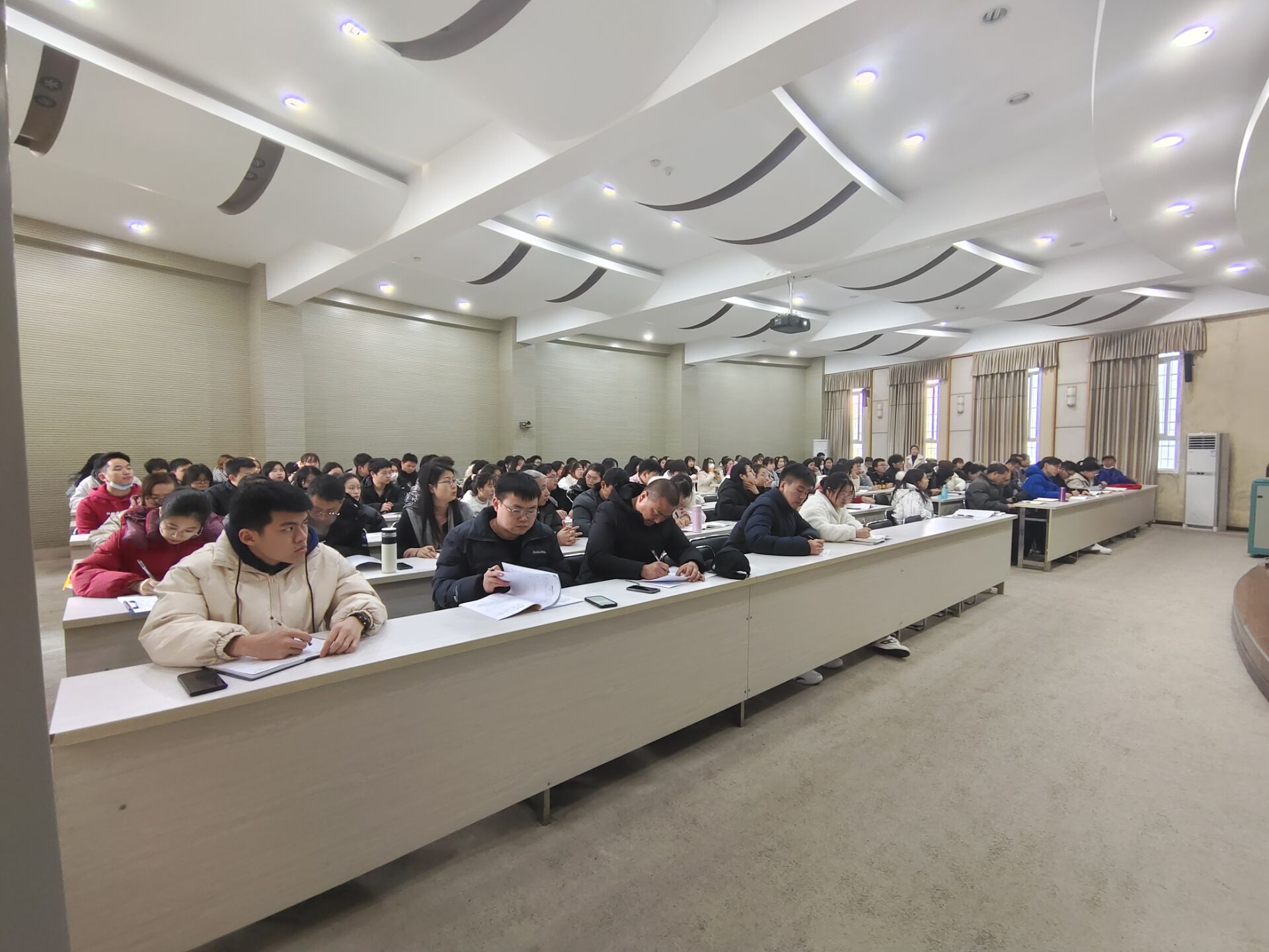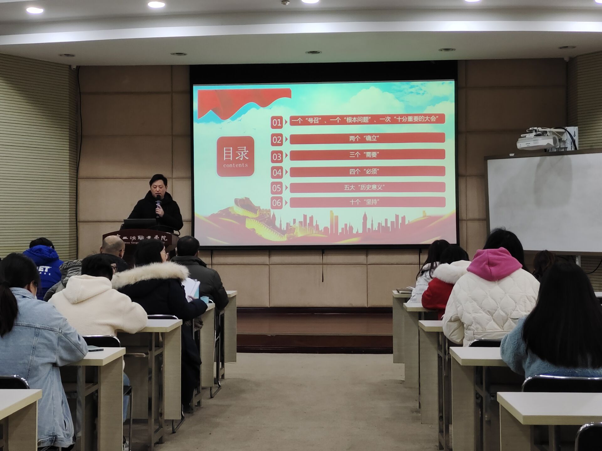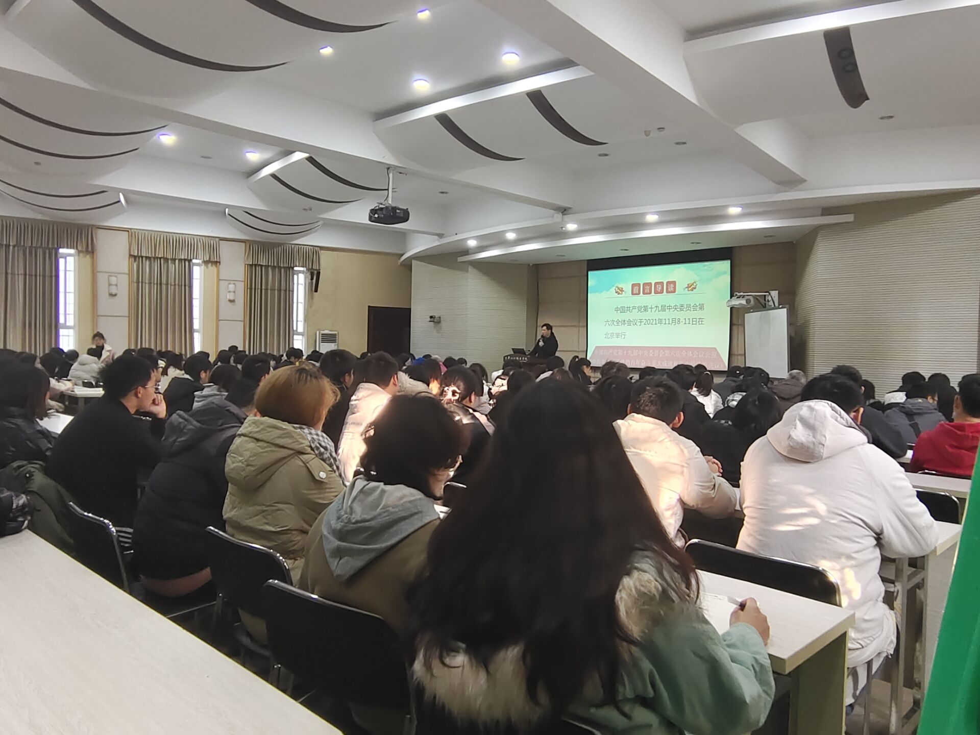 2021年12月30日下午4:00,动物科技学院党总支在博雅楼207教室深入开展十九届六中全会精神专题学习,会议由党总支书记、院长张传师主持并宣讲,动科院全体教职工及学生代表共150余人参与本次学习。