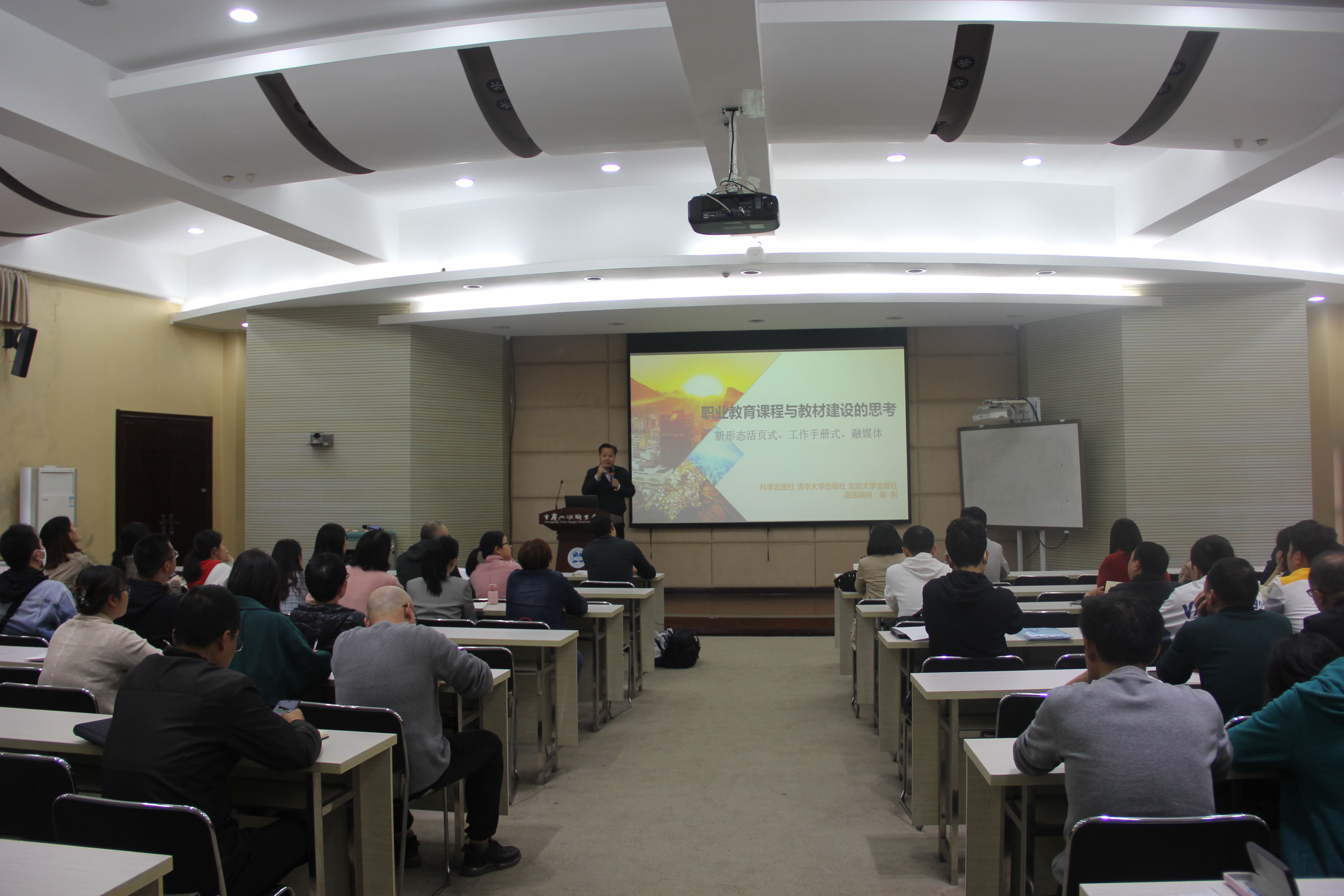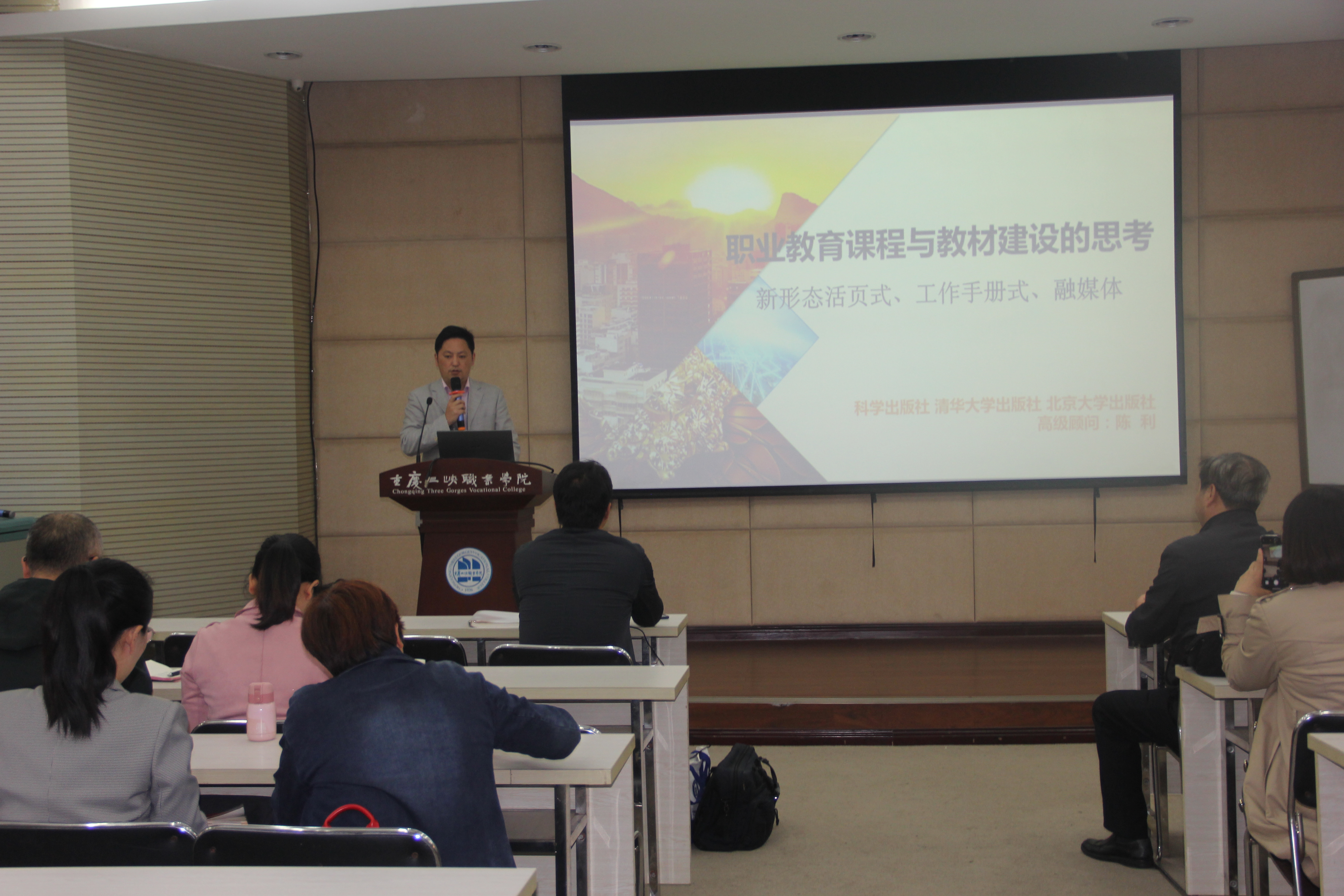 为充分发挥教材在提高人才培养中的基础性作用,推动教育教学改革,推进双高建设稳步向前,10月25日下午,动物科技学院邀请了科学出版社、清华大学出版社、北京大学出版社高级顾问陈利总编辑,开展了一场题为《职业教育课程与教材建设的思考》专题培训会。动物科技学院全体教职工参加了培训会,会议由动物科技学院党总支书记、院长张传师教授主持。