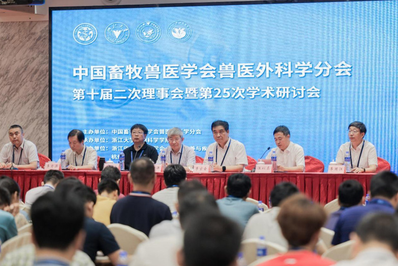 2021年7月16-18日,由中国畜牧兽医学会兽医外科学分会主办,浙江大学动物科学学院承办的中国畜牧兽医学会兽医外科学分会第十届二次理事会暨第25次学术研讨会在浙江大学顺利召开,有来自全国29省、市、自治区和直辖市的55所设有动物医学专业的高校和23家动物医院的兽医外科专家教授、青年学者及参展商等300余人参加了此次盛会。本次会议重点围绕小动物、大动物四肢、脊柱临床常见外科疾病的发病机理以及诊断与治疗新技术分享了76场精彩报告。