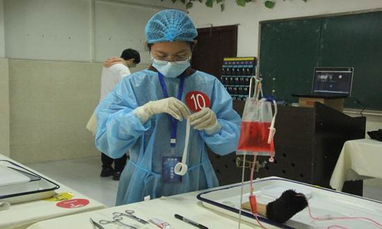 (1)比赛项目一:留置针操作。所需要的器械及材料有仿真模型、留置针、一次性消毒棉片、肝素帽、宽橡皮膏、低敏纸胶布以及抗生素软膏。考核内容主要包括无菌/消毒皮肤、除去护针帽并松动针芯、穿刺角度、绷皮、穿刺、送套管的方法、撤出针芯、锁上留置针、敷料的应用及正确的固定方法最后注明置管日期及时间并署名。