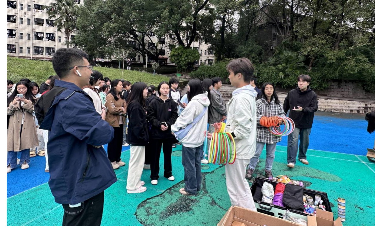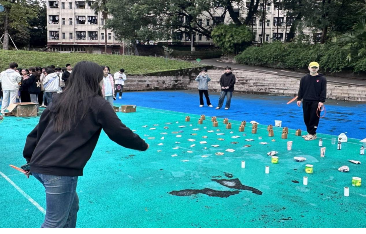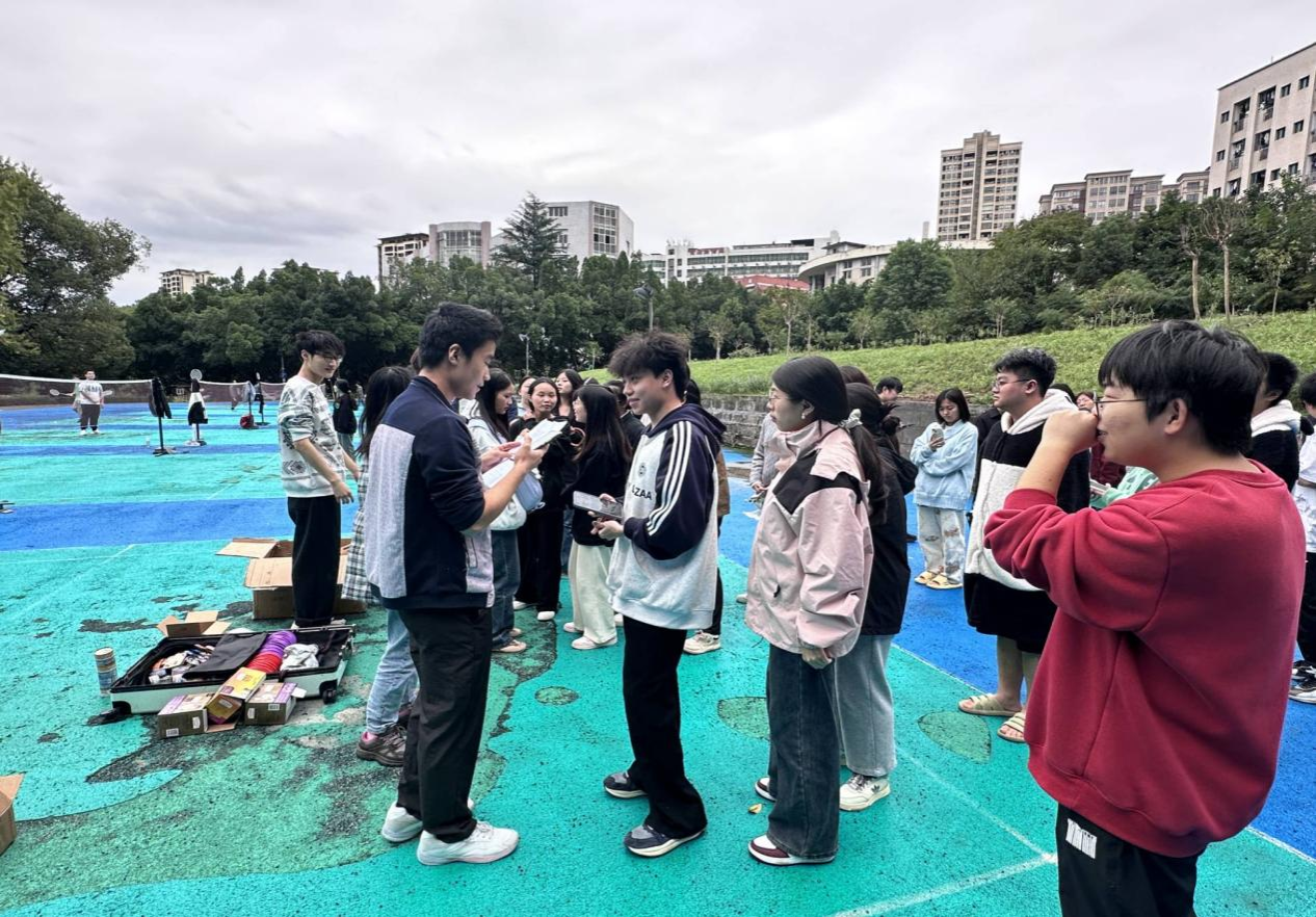 套圈环节开始后,现场气氛瞬间达到高潮。同学们排队依次进行套圈,有的技术娴熟,一出手就套中奖品,引来欢呼声;有的多次尝试未成功,但毫不气馁,继续努力。同学们充分发挥智慧和技巧,现场欢声笑语不断。三个协会的成员们也积极参与其中,与同学们一起答题、套圈,共同分享活动的乐趣,得到了同学们的一致好评。