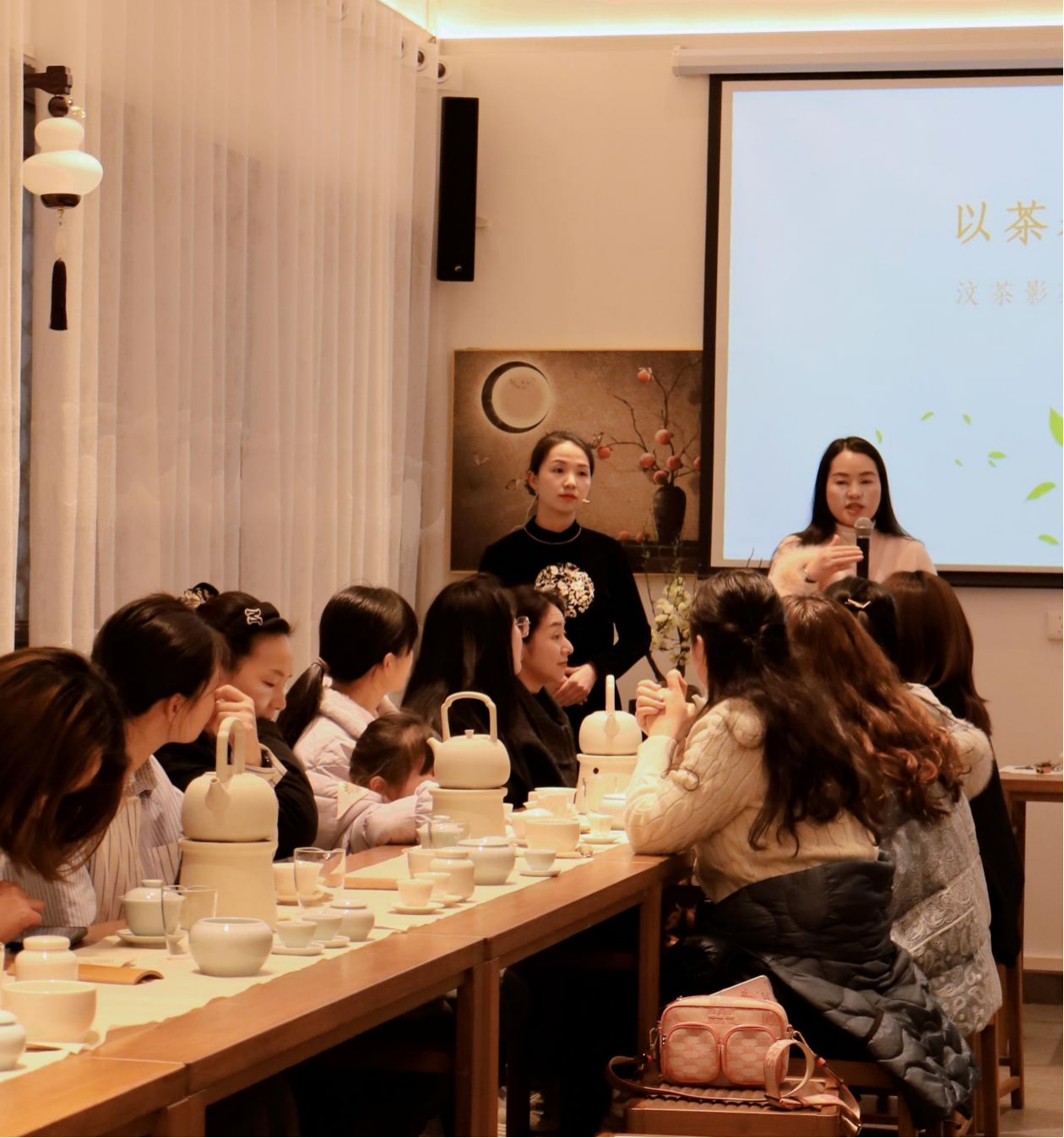 活动当日,现场被精心布置成一方静谧的茶境。古色古香的木质茶桌摆放整齐,桌上茶具一应俱全。四周点缀着典雅的书画、清幽的绿植,悠扬的古典音乐如潺潺溪流般流淌,瞬间将老师们从繁忙工作拉进了诗意的茶空间。