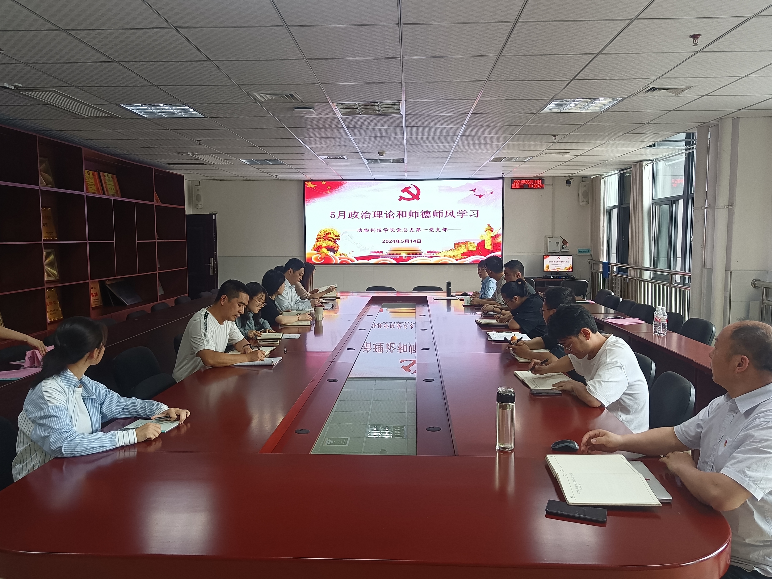 2024年5月14日下午2:30,动物科技学院党总支第一党支部在现代畜牧科技大楼412教室开展了5月“三会一课”学习研讨、政治理论及师德师风学习活动。会议由一支部书记母治平主持,一支部党员教师和一支部联系群众教师参会。