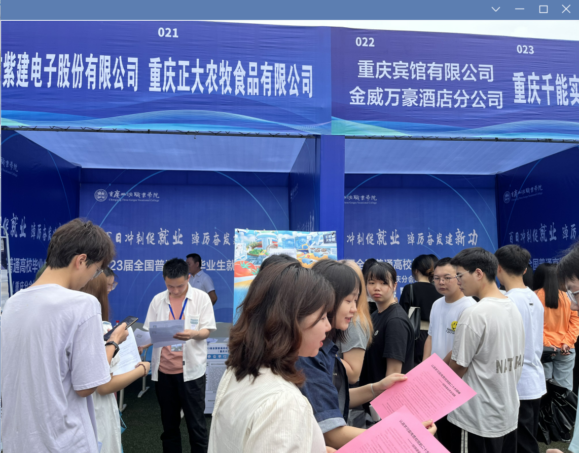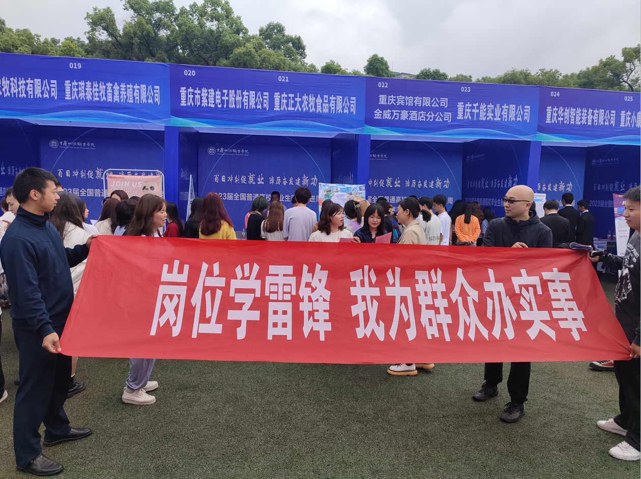 本次活动由支部书记吴春艳同志带领大家开展,支部全体党员深入2023届全国普通高校毕业生就业促进周(重庆分会场)现场,利用双选会之际,为学生解答就业问题,师生共同宣传党的二十大精神,弘扬理论联系实际的优良学风。