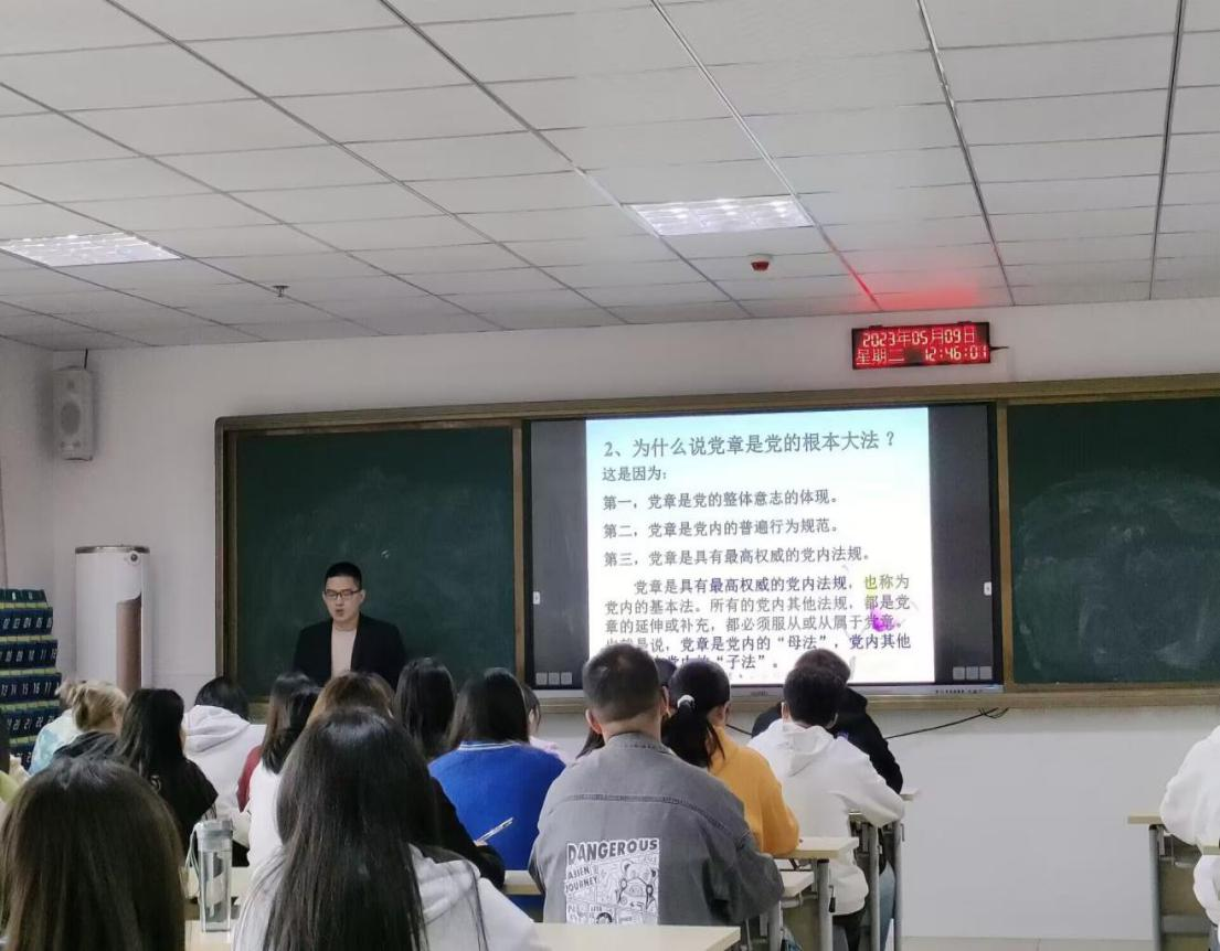 2023年5月9日在动科楼614开展《中国共产党章程》的集中学习,主讲人动物科技学院第一党支部组织委员刘远泽老师通过党章的诞生及发展历程,向入党积极分子们讲解党章是具有最高权威的党内法规,党章党规党纪就是作为党员做人、行事、履职的底线,以及在党内生活中所起的重要作用。通过此次集中学习党章党规,入党积极分子进一步树立了规矩意识,时刻牢记党的性质宗旨、政治主张、奋斗理想,把对马克思主义的信仰、对社会主义和共产主义的信念作为终身不变的坚守。