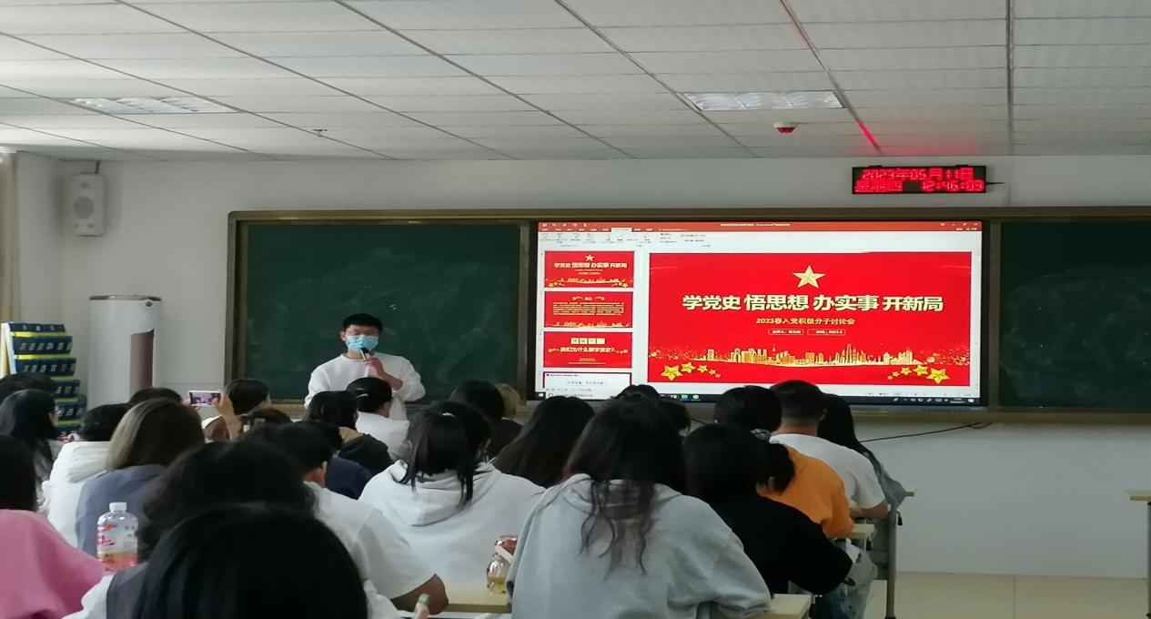 2023年5月11日中午12:40在动科楼614开展2023年春季入党积极分子的“党史教育”讨论会。本次讨论会,由主讲人三支部组织委员黄石磊老师向各位入党积极分子讲解中国共产党的党史,并对入党积极分子提出期盼,希望他们能在今后的生活中牢记使命,不忘初心,在新时代不断加强党的建设。