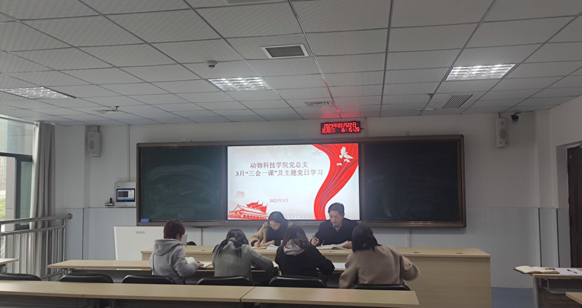 2023年3月22日下午4:00,动物科技学院党总支开展3月“三会一课”和主题党日活动。会议由动物科技学院党总支书记、院长张传师主持,全体党总支委以及各支部书记参会。