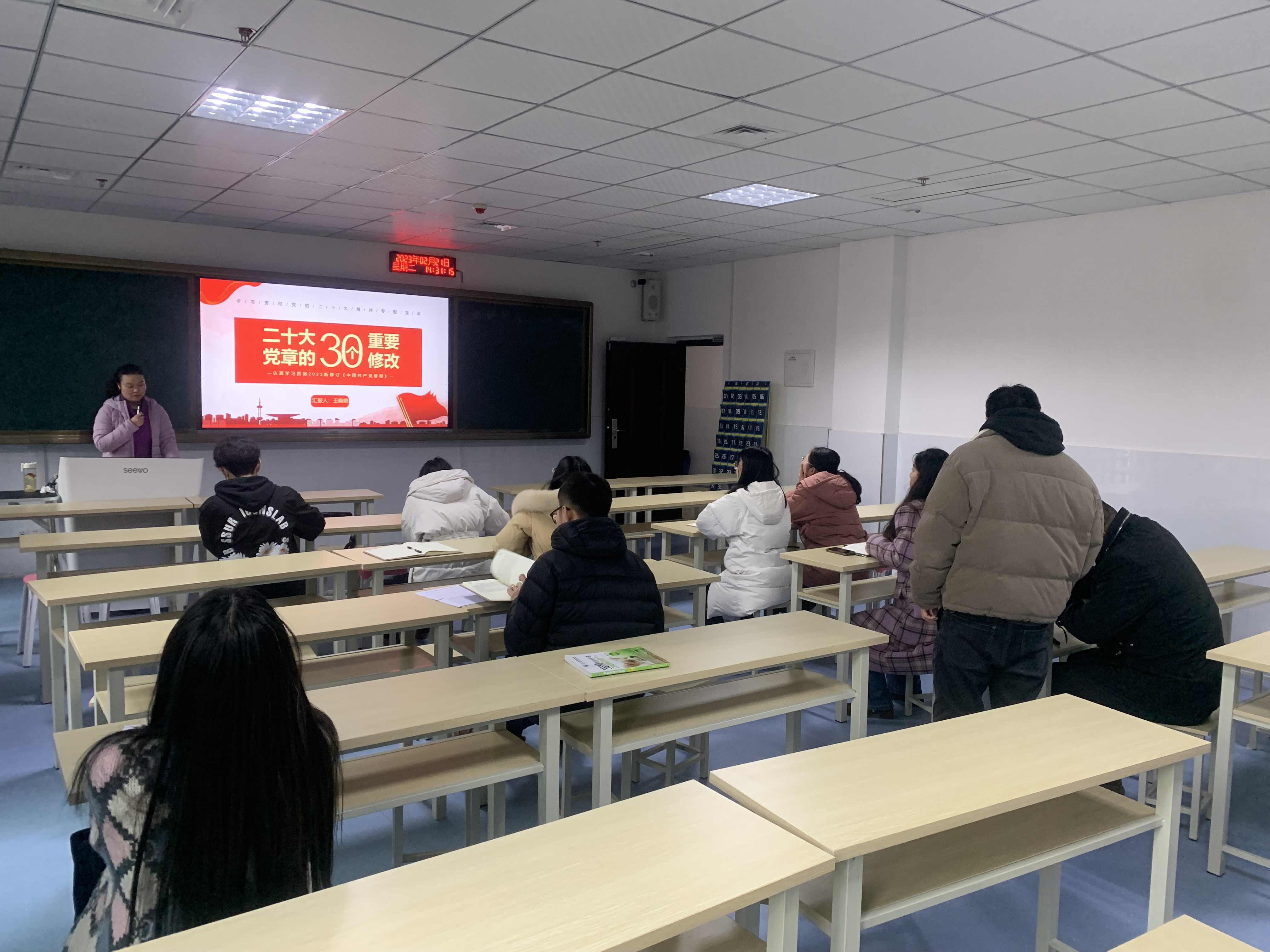 王晓艳同志首先带领支部同志对《中国共产党章程(修正案)》多个重要修改点进行了学习。同时重温党的二十大报告内容。