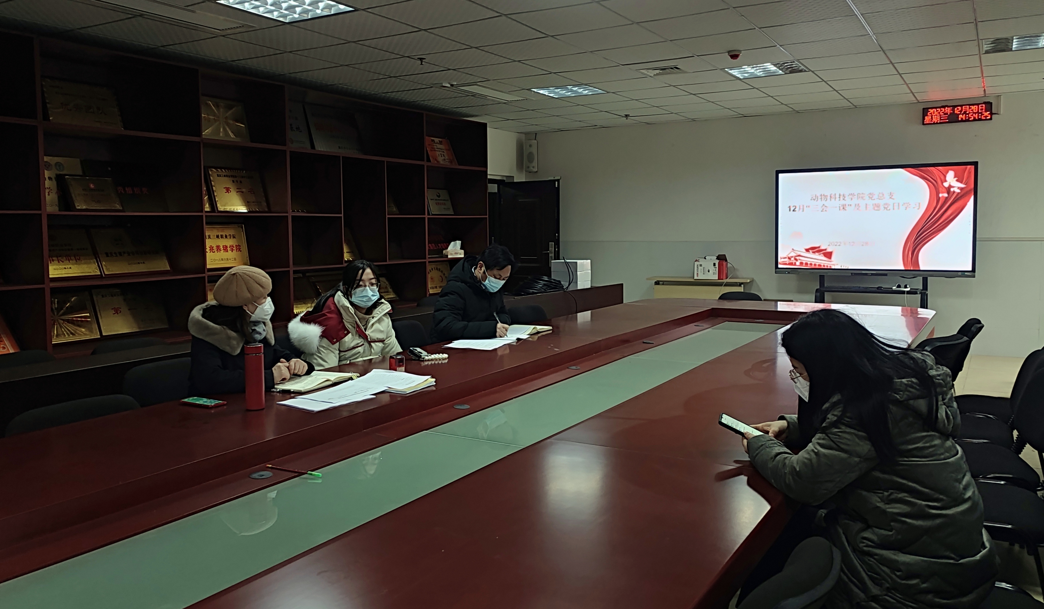 12月28日下午2:30,动物科技学院党总支开展12月“三会一课”和主题党日活动。会议由动物科技学院党总支书记、院长张传师主持,党总支副书记李思琪以及党总支全体委员参加学习。