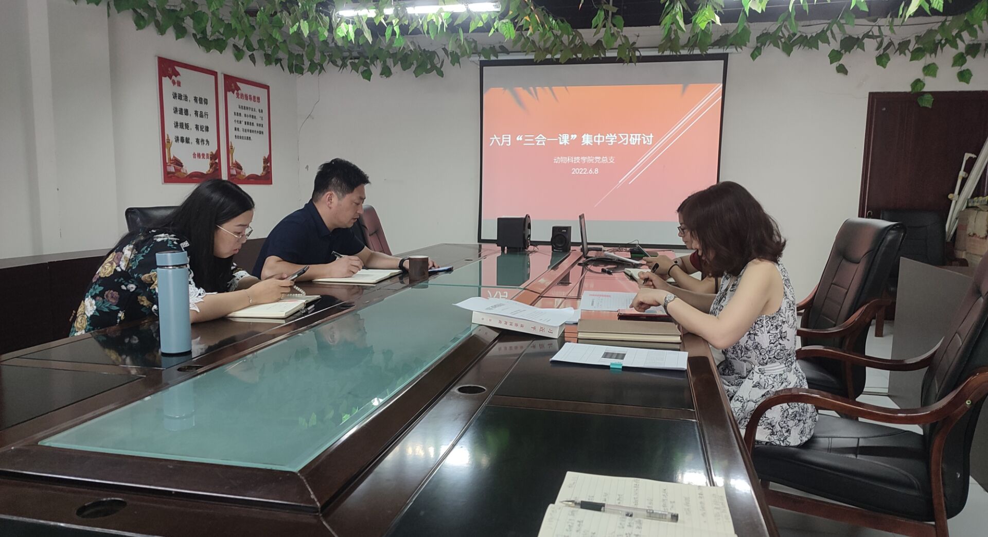 2022年6月8日上午10:00,动物科技学院党总支在动科120开展6月三会一课学习研讨活动。本次研讨活动由党总支书记、院长张传师主持。