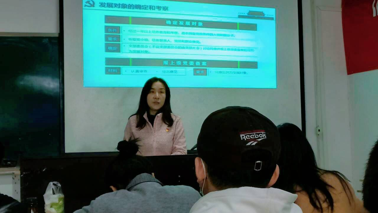图1:谭丽老师讲述党员发展程序、《党支部工作条例》