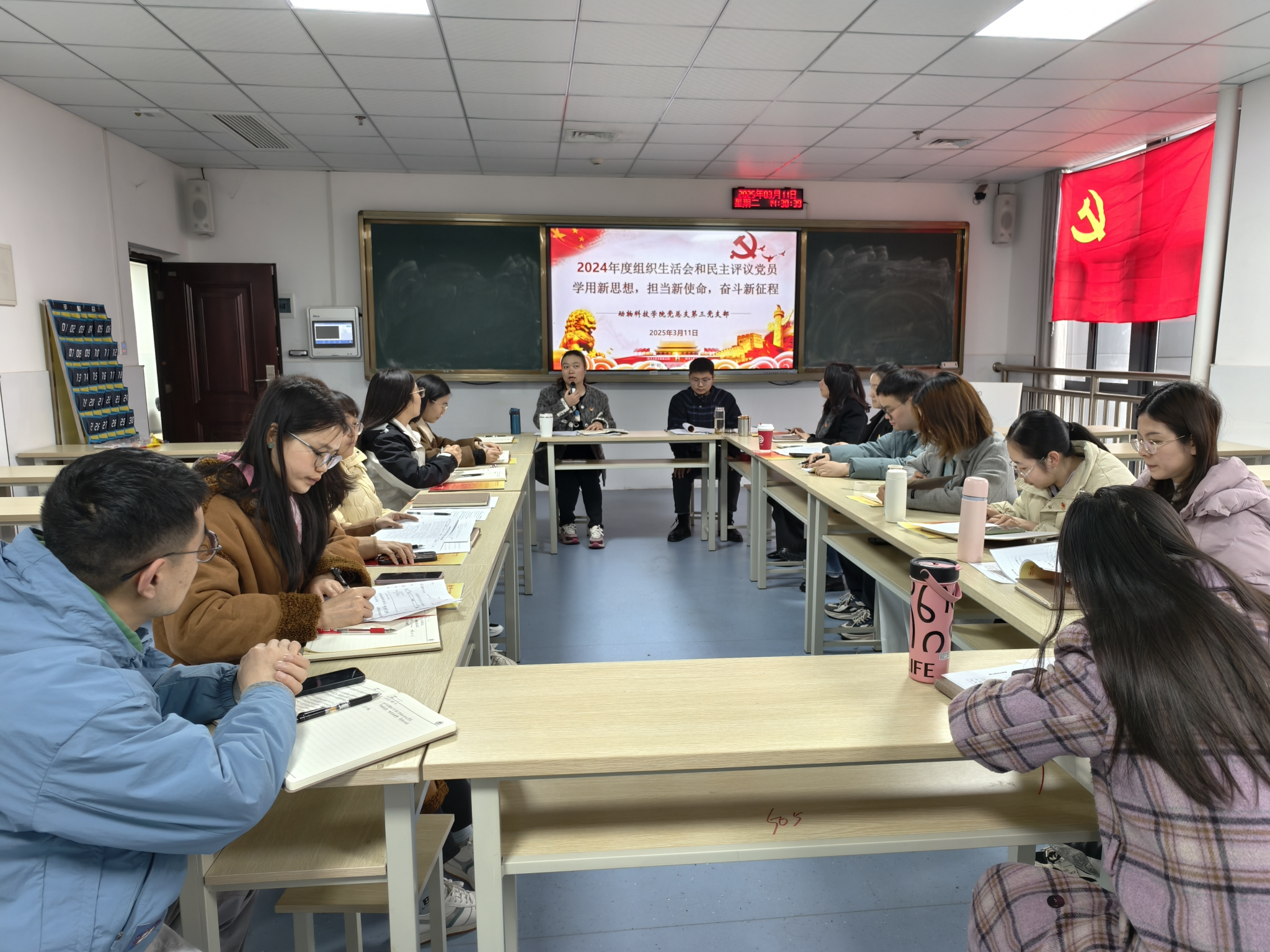 2025年3月11日中午14:30,动物科技学院第三党支部全体党员在动科楼507教室进行了组织生活会和民主评议党员,动物科技学院党总支专职组织员谭丽同志列席会议,会议由第三党支部书记王晓艳同志主持。
