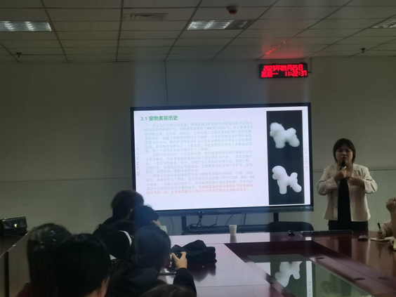 下午3点,重庆宠博仕宠物美容培训中心的负责人蔡老师为学生们展示了宠物美发技巧,让他们了解了美容行业的实际操作。