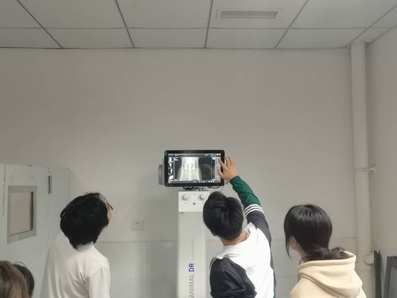 10点,梁明举老师引领学生前往小动物实验室,介绍了众多手术器材以及如何使用它们。特别值得一提的是,梁老师还亲自示范了如何拍摄X光片,让学生们获得了实际操作的机会。