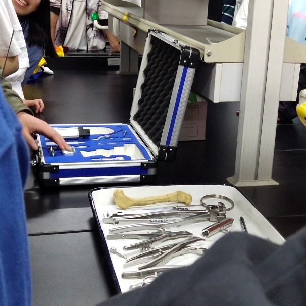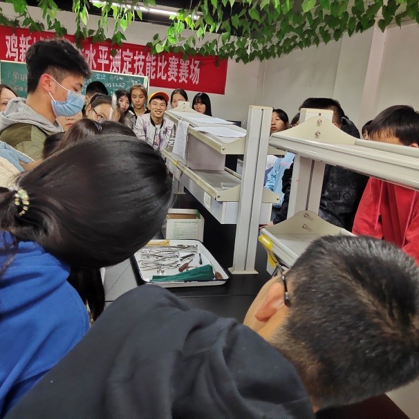 随后新生们在专业老师的带领下观摩了学长和学姐在动科楼实训室进行的实际操作。首先观摩了美容实训,通过老师和学姐的讲解和演示,初步了解了宠物美容的内容,涵盖的范围和主要学习内容。然后学长学姐们还演示了一些常用的基本技术,如留置针的安放、缝合技术,也介绍了一些外科手术器械和技术。带队老师讲解了相关课程的学习方法和技巧。通过实际观摩,引发了新生们的兴趣,不少同学主动拿起美容剪,想要进行操作。新生们通过观摩,对专业课程的兴趣进一步加深,也能体会专业技术的重要性和动手能力的重要性。对以后的专业课程的学习有了初步的了解。