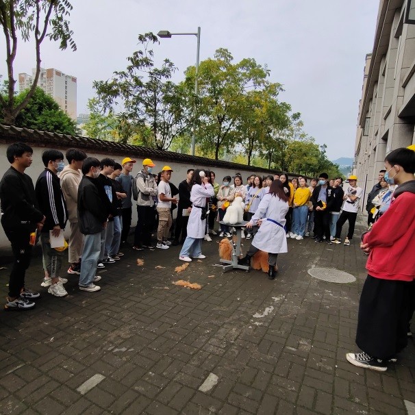 李龙娇、王晓艳老师和学姐带领大家进校宠物美容体验