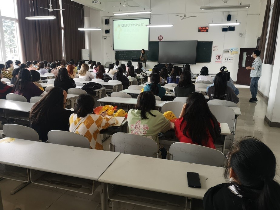 职业体验第二天,学院邀请了在宠物医疗、宠物美容、宠物驯导等方面的专家来为20级宠物新生进校职业发展和职业规划的讲座。首先由重庆欣宠动物医院院长胡欣老师为大家进行了宠物医疗行业的现状和发展前景、宠物医院的岗位需求和对专业的技术要求等方面的详细介绍和讲解。新生们对于宠物医疗行业的发展速度赶到惊讶,也对宠物诊疗前景充满了信心。接着宠物驯导专家重庆九牧宠物驯导学校校长左丽老师为大家带来了宠物驯导的表演和对宠物驯导行业的介绍,大家在一阵阵喝彩中感受到了宠物驯导的魅力,也对未来的职业规划充满了无限的期待和想象。然后由重庆思蒙宠物美容学校的校长何艾伦老师为大家带来了一场精彩的讲座,通过讲座,大家了解了宠物美容相关职业的发展和学习方法,对专业的职业发展有了更多的体会和了解。