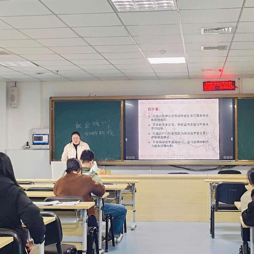 为扎实推进2025届毕业生就业工作,提升就业工作质量,动物科技学院于2025年3月28日在动科楼414会议室召开了2025届毕业生辅导员就业工作指导会。本次会议由李思琪副书记主持,就业干事吴荣主讲,全体2025届毕业生辅导员参与。