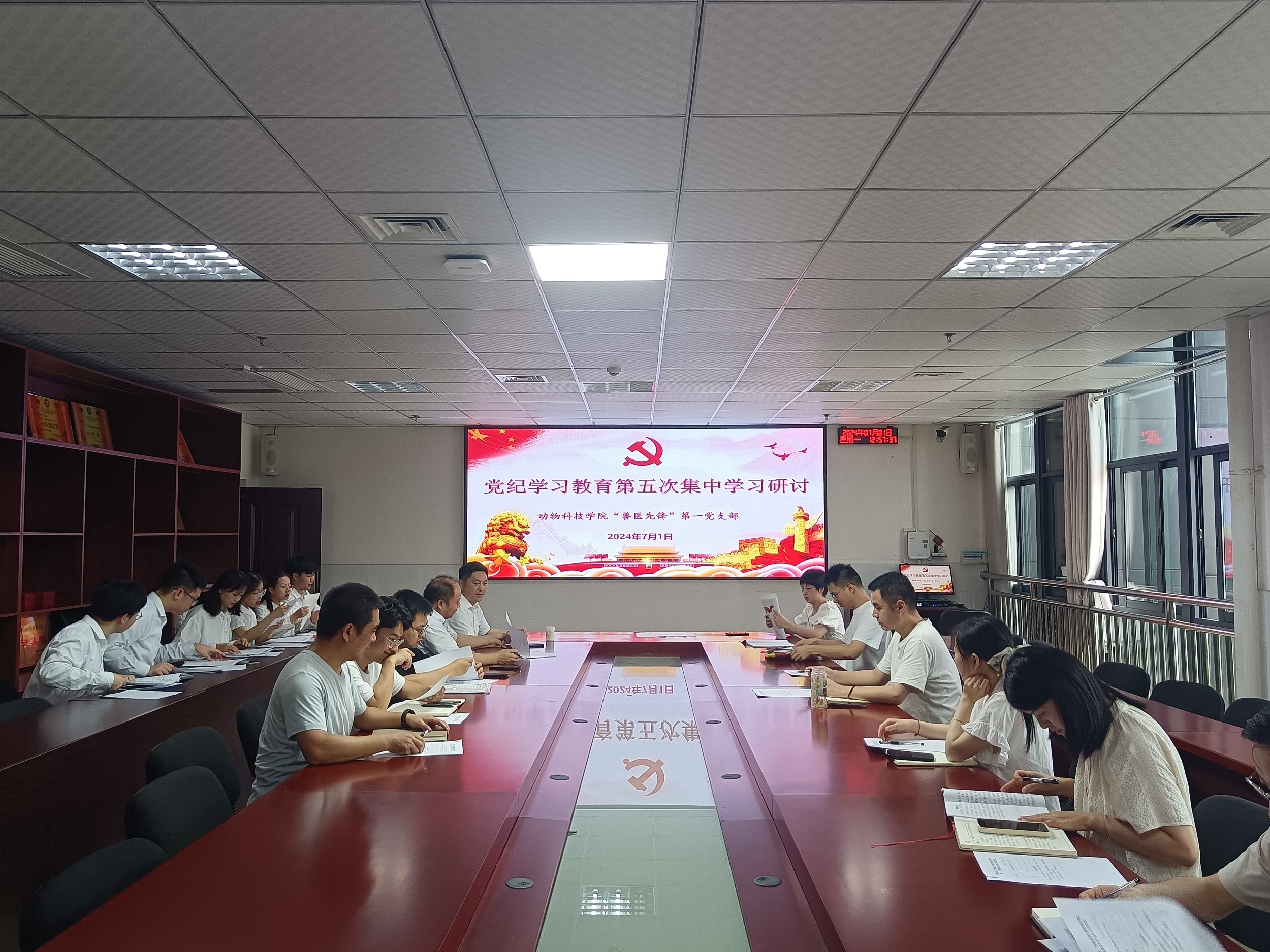 动物科技学院“兽医先锋”第一党支部开展党纪学习教育第五次集中学习研讨