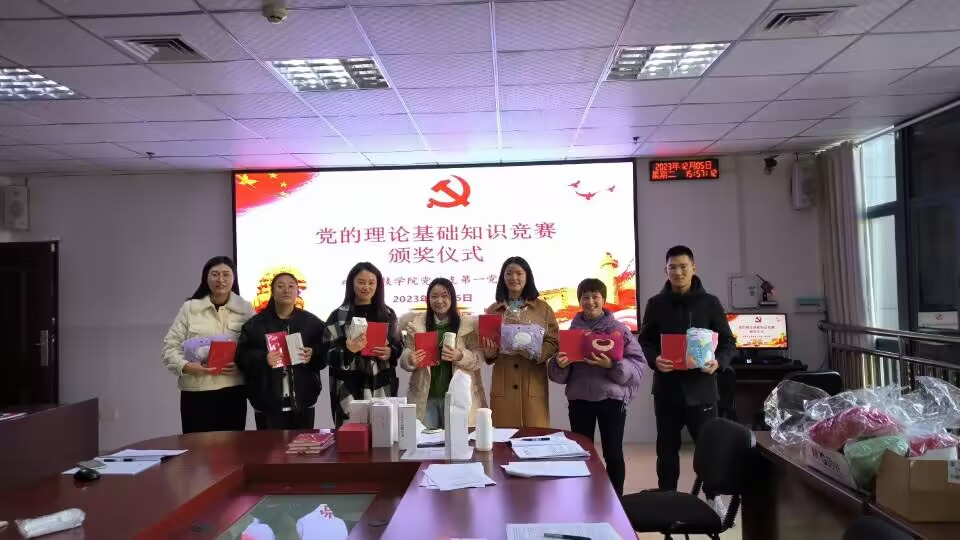 最后,母治平同志为获奖同志颁奖并总结表示本次知识竞赛的成功举办,是各位党员老师和预备党员、入党积极分子深入贯彻主题教育的生动实践,通过本次竞赛活动,使党支部更好的了解到各位党员老师和预备党员、入党积极分子的学习情况,同时也夯实了党的基本理论知识。要求所有支部成员继续以党的理论思想武装自己的头脑,牢记使命,不忘初心,把党的基本理论知识运用到实践中,不断提升综合素养。