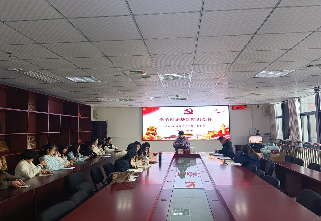 为深入开展学习贯彻习近平新时代中国特色社会主义思想主题教育,增强党性修养,在实践中砥砺前行。2023年12月5日15:30,动物科技学院党总支第一党支部在现代畜牧科技大楼412开展党的理论基础知识竞赛活动,该活动由支部书记母治平主持,一支部党员老师、预备党员、入党积极分子参加此次活动。