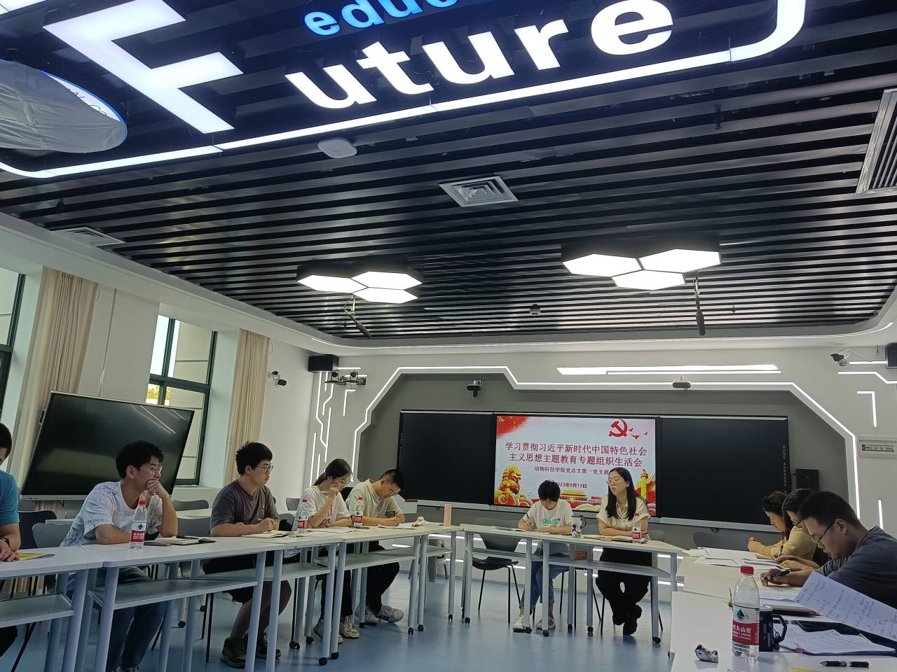 2023913日下午330,动物科技学院党总支第一党支部在动科楼606召开学习贯彻习近平新时代中国特色社会主义思想主题教育专题组织生活会。动科院党总支副书记李思琪、农林专职组织员冉莉列席会议,一支部全体教师党员、学生党员会。会议由动物科技学院党总支第一党支部书记母治平同志主持召开。