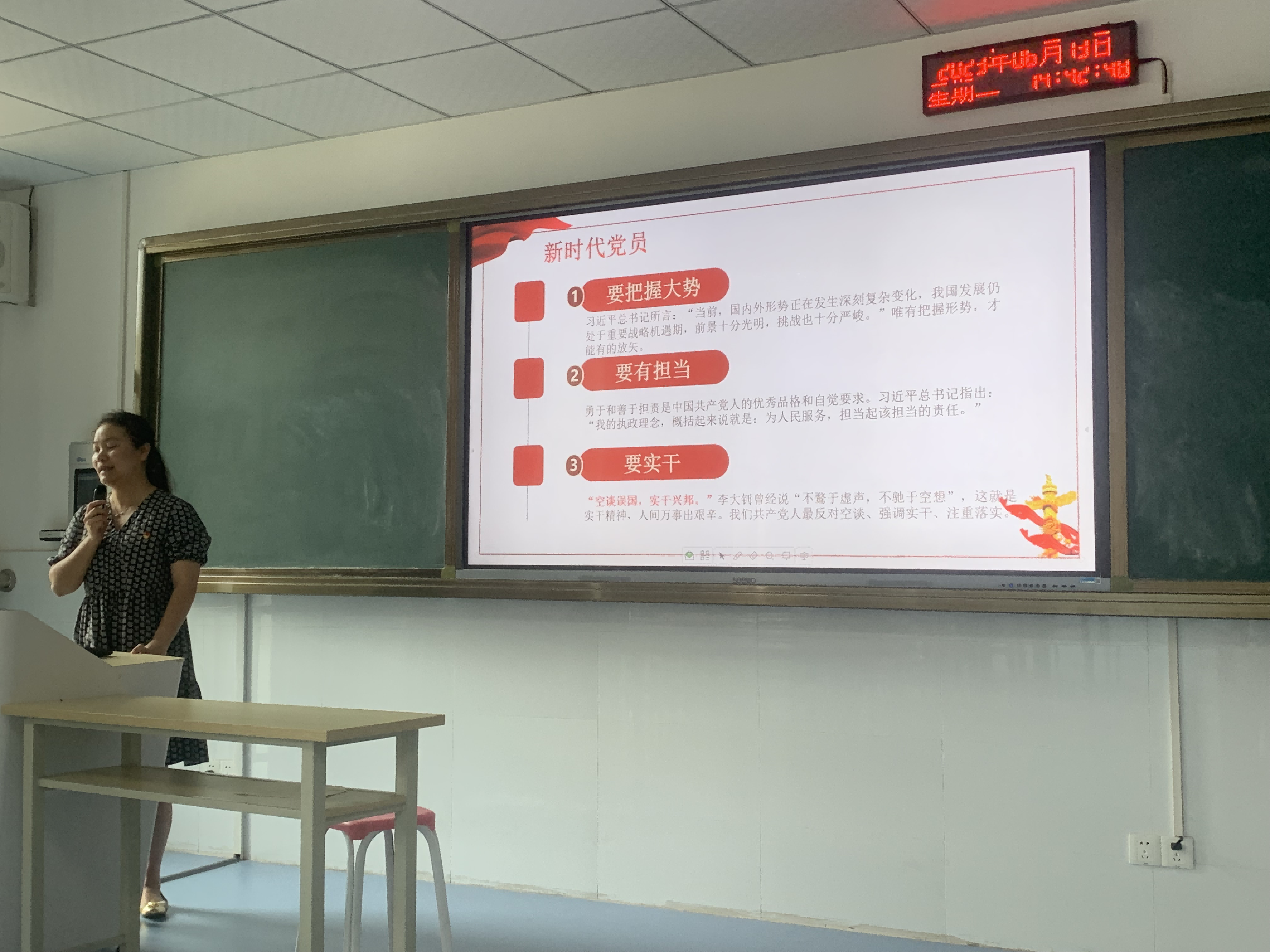 首先王晓艳同志带领大家学习“新时代党员”精神,百年来我们党始终是有崇高理想和坚定信念的党。坚定理想信念,坚守共产党人精神追求,始终是共产党人安身立命的根本。作为新时代的共产党员要勇担当、善作为,坚定马克思主义信仰、共产主义远大理想、中国特色社会主义共同理想,真正发挥党员作用,凝聚步调一致向前进的力量。