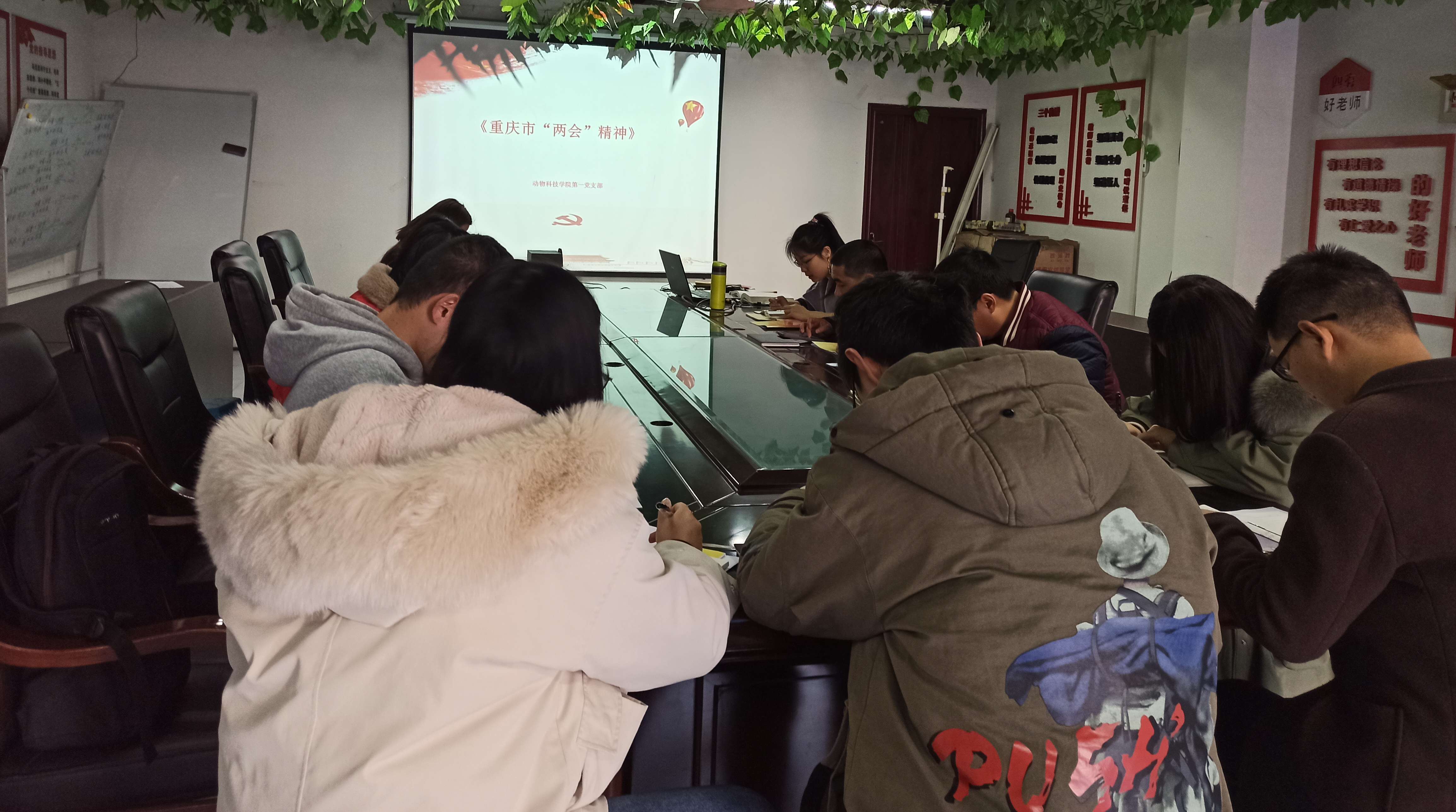 2022年3月9日上午,动科第一党支部在动科楼120开展“两会精神”专题学习,会议由支部书记陈脊宇主持,一支部全体党员参加。