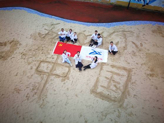 卫生打扫完成以后,同志们在沙坑中画出“我爱你,中国”五个大字,还不自觉地唱起了,我爱你,中国,我要好好努力,为祖国做出贡献,祝福祖国,愿我们伟大的祖国繁荣富强,加油中国!