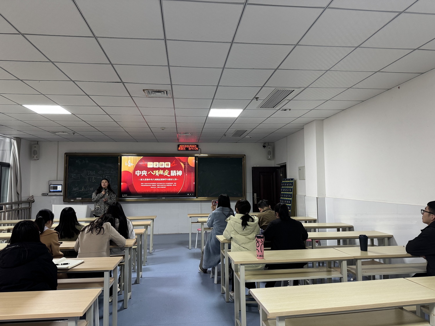 在专题学习环节,王晓艳书记带领全体党员逐字逐句学习《中央八项规定实施细则》,结合高校教师科研经费使用、学术活动接待、学生工作中形式主义等典型案例,重点剖析了“改进调查研究”“规范公务接待”“厉行勤俭节约”等条款的现实意义。她强调:“八项规定不是一阵风,而是长期悬在党员干部头上的纪律戒尺,尤其在教育领域,我们的一言一行直接影响立德树人成效。”会上还集体观看了警示教育片《作风建设永远在路上》,通过反面教材强化党员底线意识。